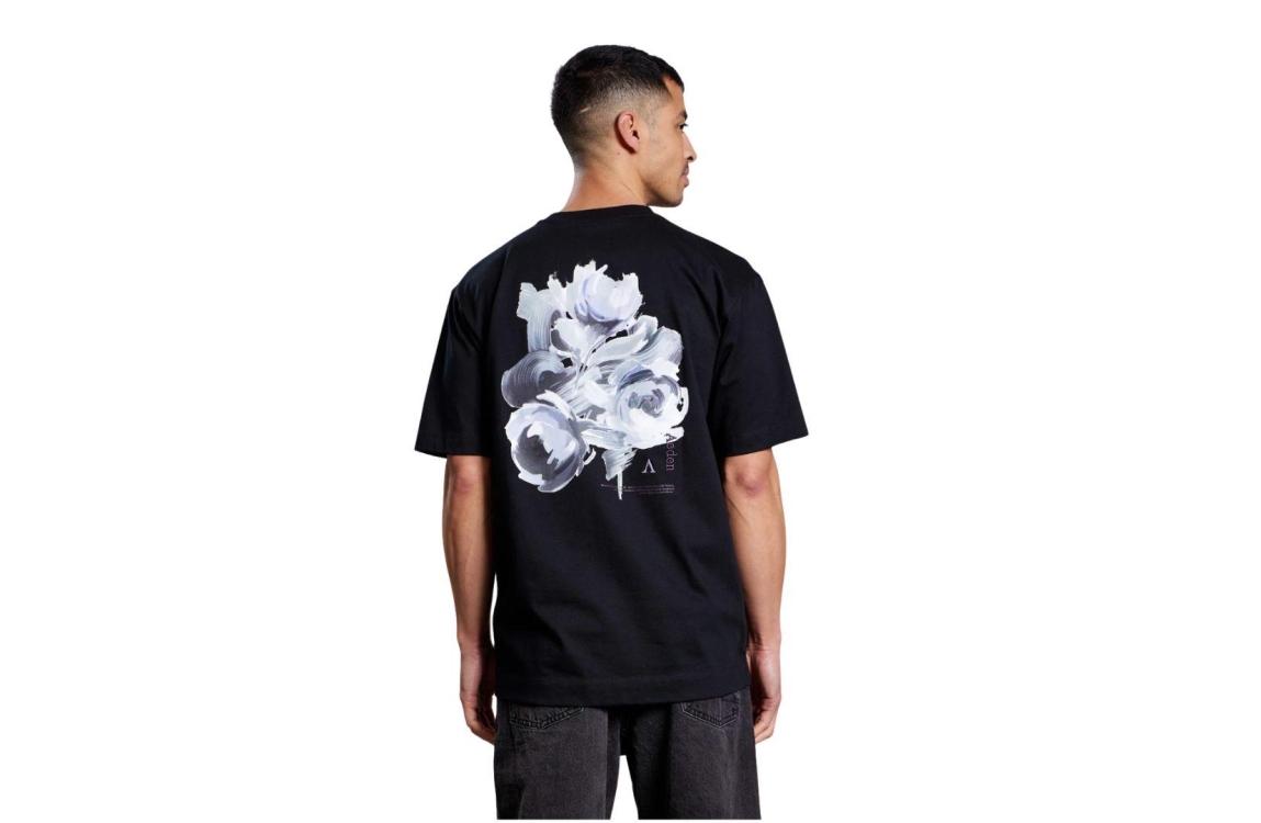 Aeden T-shirt Fioran A22243229. Dit oversized model is voorzien van een ronde hals en heeft korte mouwen. Deze zwarte T-shirt van Aeden is bewerkt met een toffe backprint en is afgewerkt met het logo aan de voorzijde op de borst.