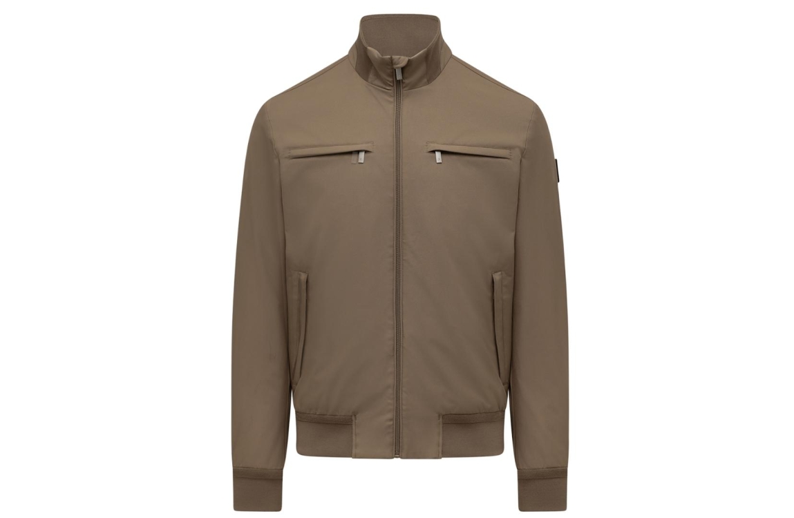 Agiato Paolo Sand jas AT001-60000. Dit rechtvallend model heeft een ronde hals, lange mouwen en sluit door middel van een rits. Deze bruine tussenjas van Agiato is voorzien van vier ritszakken op het voorpand en afgewerkt met elastische boorden aan de onderzijde.