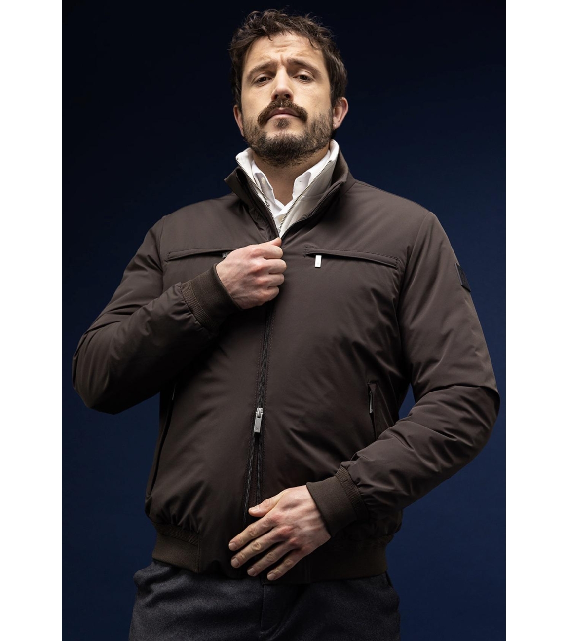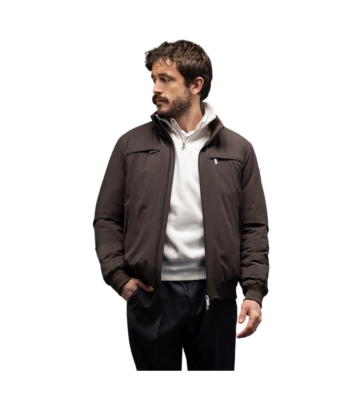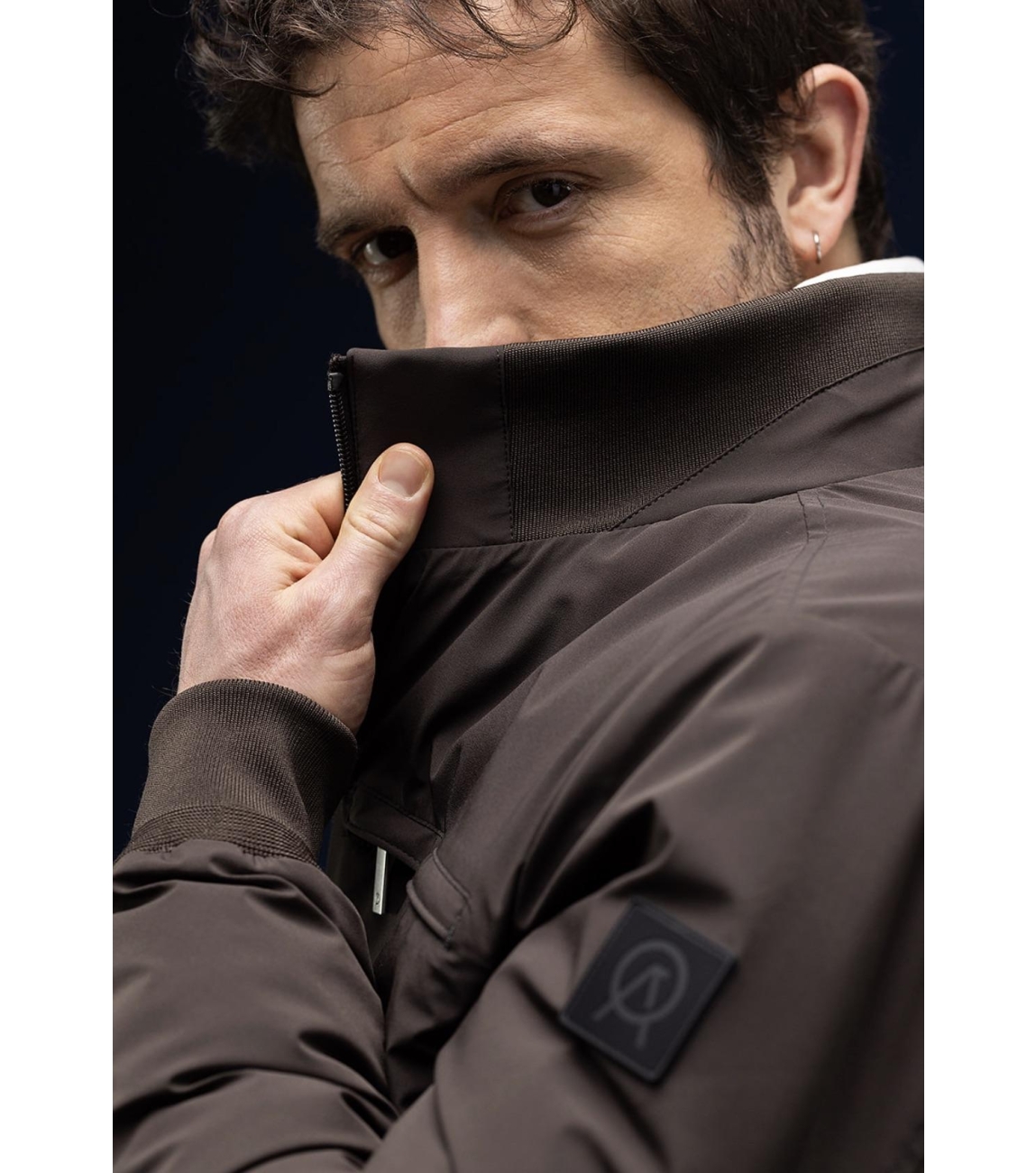 Agiato Stefano Brown AT008-51004 winterjas. Het rechtvallend model heeft een ronde hals, lange mouwen en sluit door middel van een rits. Deze bruine winterjas van Agiato is voorzien van verschillende jaszakken en warm gevoerd.