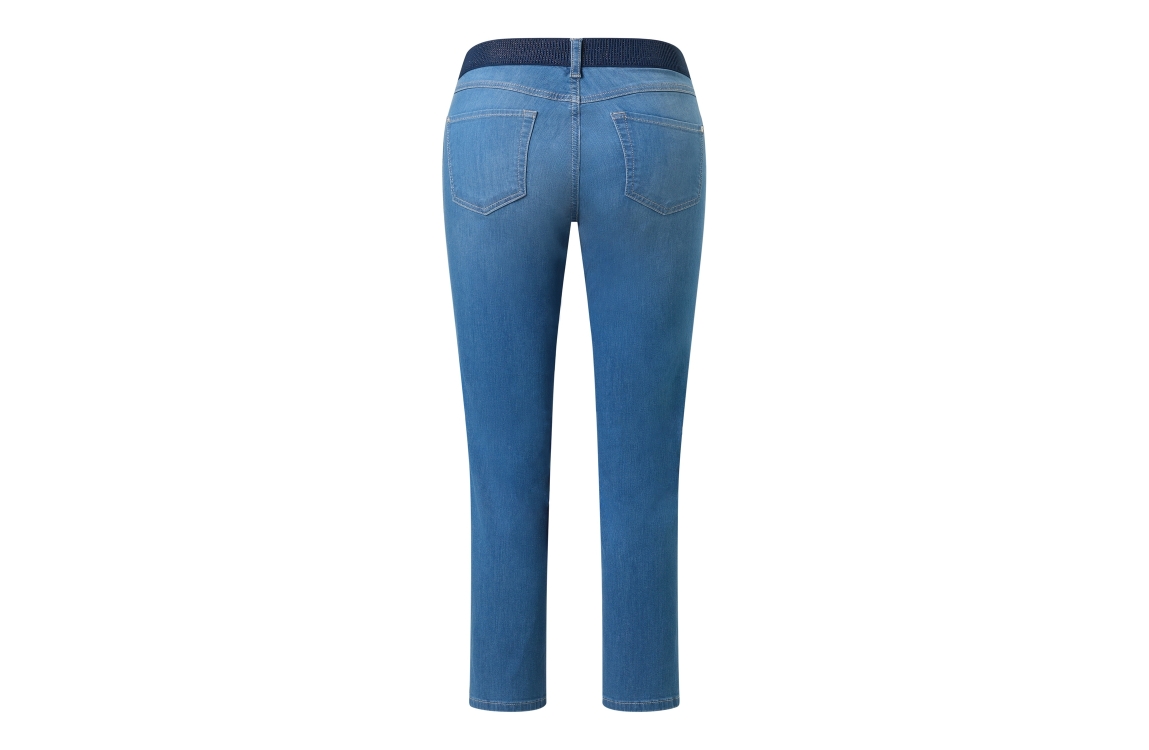 Angels jeans Cira Sporty 332345300-345. Dit slim fit model sluit door middel van een knoop, rits en een elastische boord bewerkt met glitter. Deze denim jeans van Angels beschikt over steekzakken aan de voor- en achterzijde.