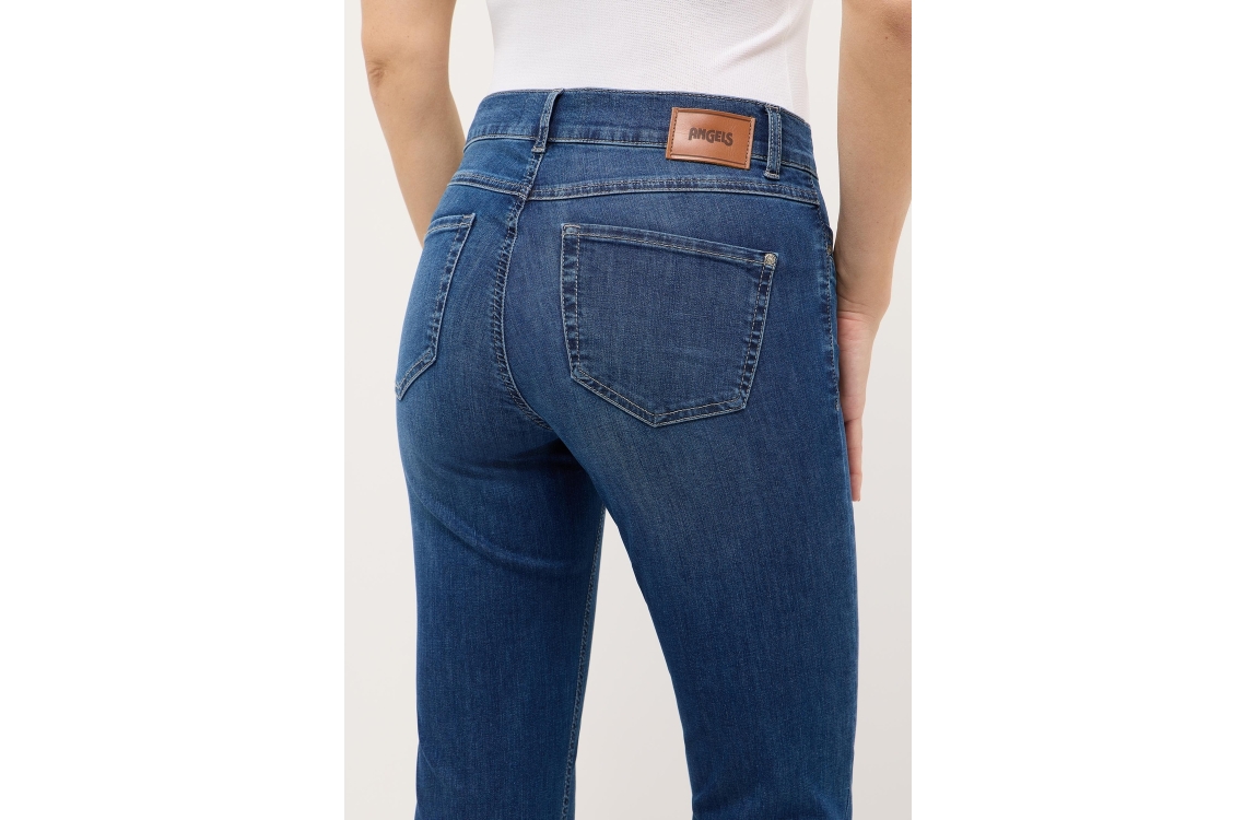 Angels jeans Lena Smart 3328953-335. Dit bootcut model sluit door middel van een knoop en rits afgewerkt met ceintuurlussen. Deze denim jeans van Angels beschikt over twee zakken aan de voor- en achterzijde.