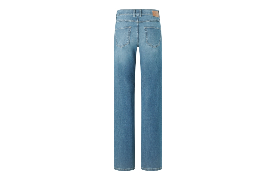 Angels jeans Leni 3338900-3458. Dit bootcut model sluit door middel van een knoop en rits afgewerkt met ceintuurlussen. Deze lichte denim jeans van Angels en is uitgevoerd in een 5-pocket model.