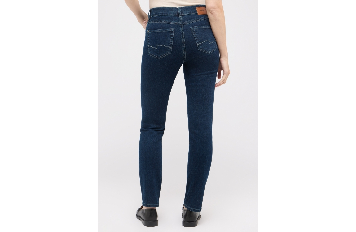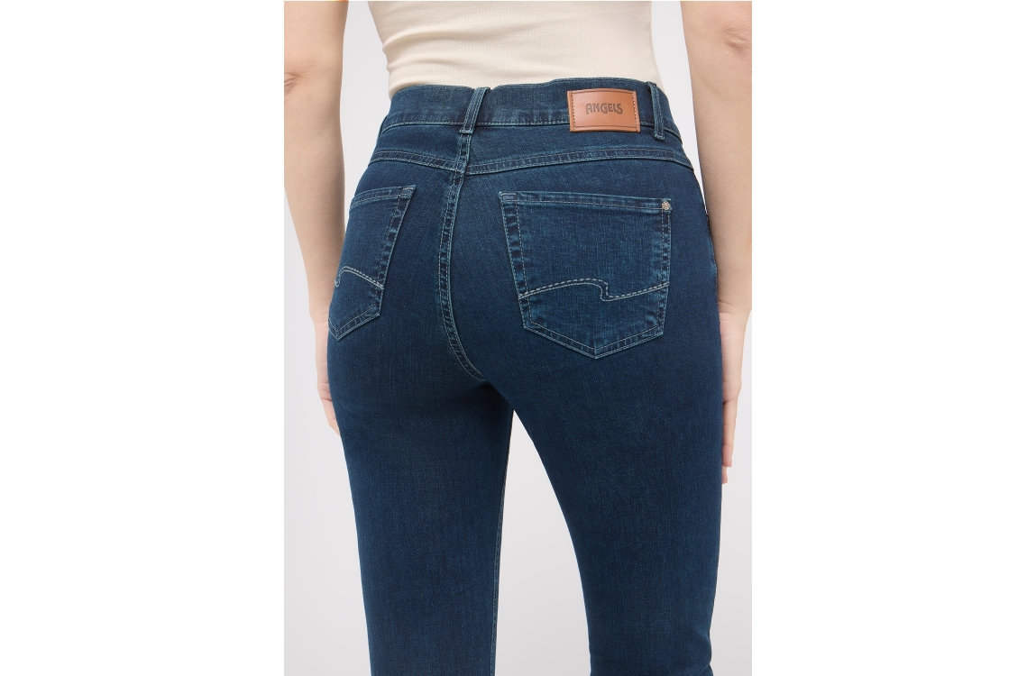 Angels jeans CICI 5334. Dit slim fit sluit door middel van een knoop en rits afgewerkt met ceintuurlussen. Deze donkerblauwe jeans van Angels is uitgevoerd in een 5-pocket model.