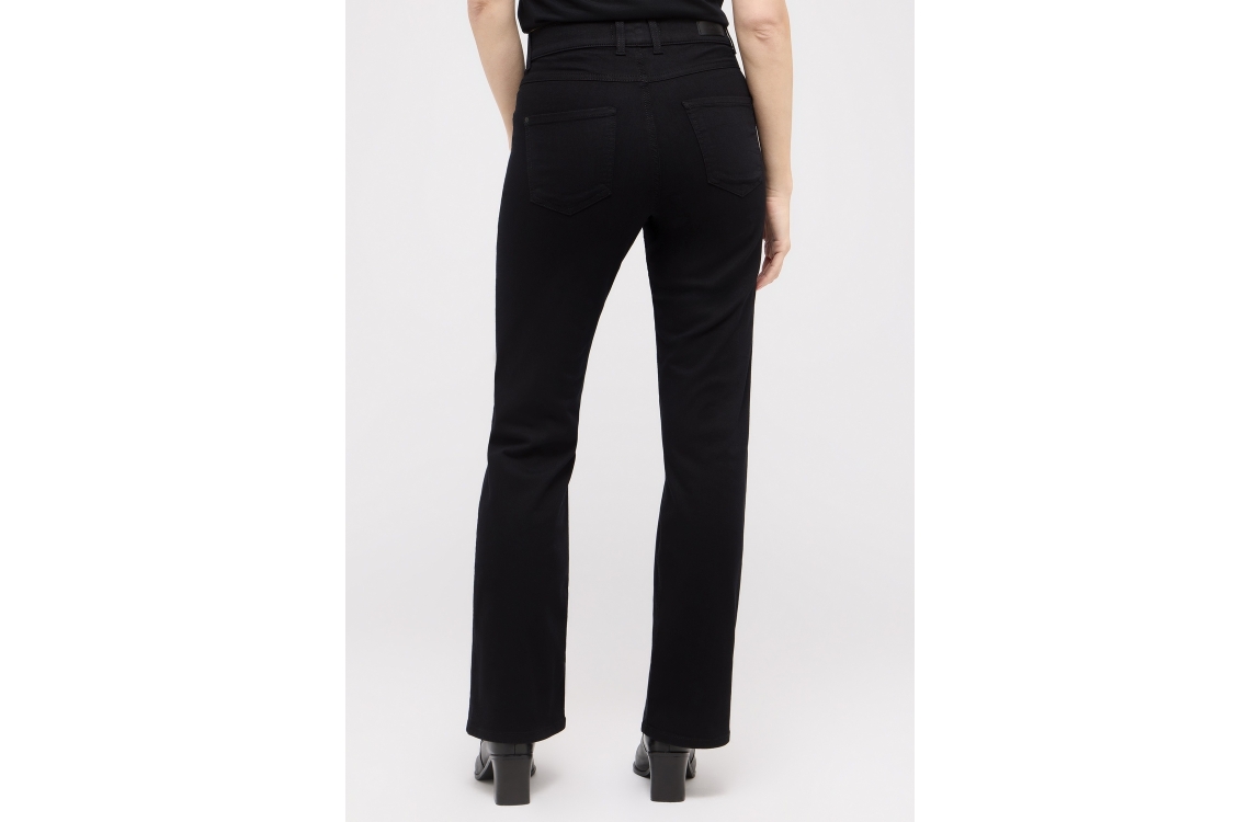 Angels Lara jeans 5192900. Dit wide leg model sluit door middel van een knoop en rits afgewerkt met ceintuurlussen. Deze zwarte jeans van Angels is uitgevoerd in een 5-pocket model.