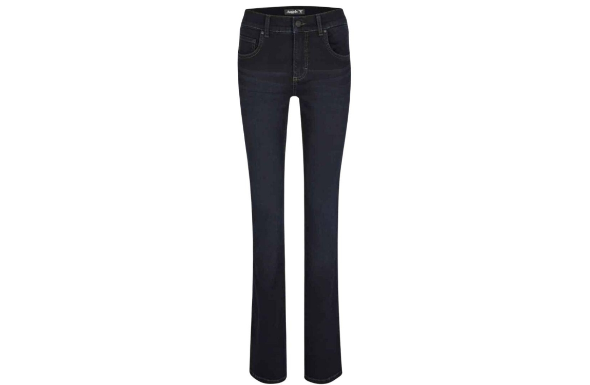 Angels broek 346-890031. Dit bootcut model sluit door middel van een knoop- en ritssluiting en is voorzien van ceintuurlussen. Deze donkere denim broek van Angels heeft twee steekzakken aan de voor- en achterzijde met een muntenzakje. Het model is uitgevoerd in stretchkwaliteit.