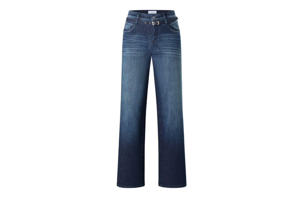Angels jeans Liz belt 3502565. Dit wide leg model sluit door middel van een knoop, rits en een afneembaar ceintuur met gesp. Deze blauwe jeans van Angels is uitgevoerd in een 5-pocket model.