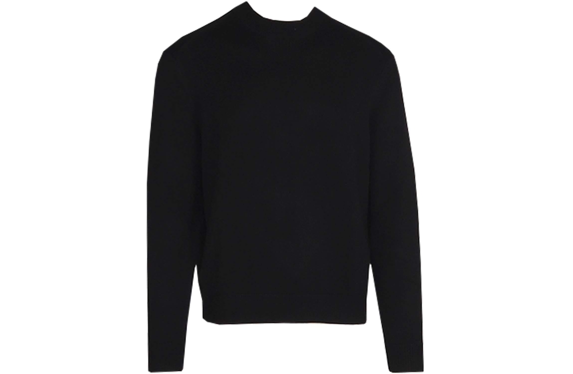 Armani Exchange pullover. Dit aangesloten model heeft lange mouwen en een ronde hals. Deze zwarte pullover van Armani Exchange is afgewerkt met een klein merkembleem op de onderste boord.