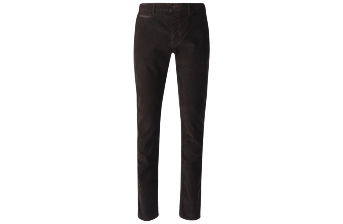Atelier Noterman broek ATN05-A78-1585-934. Dit rechtvallende model sluit door middel van een knoop en rits. Deze donker bruine broek van Atelier Noterman is voorzien van 5-pocket zakken, riemlusjes en uitgevoerd in een corduroy materiaal.