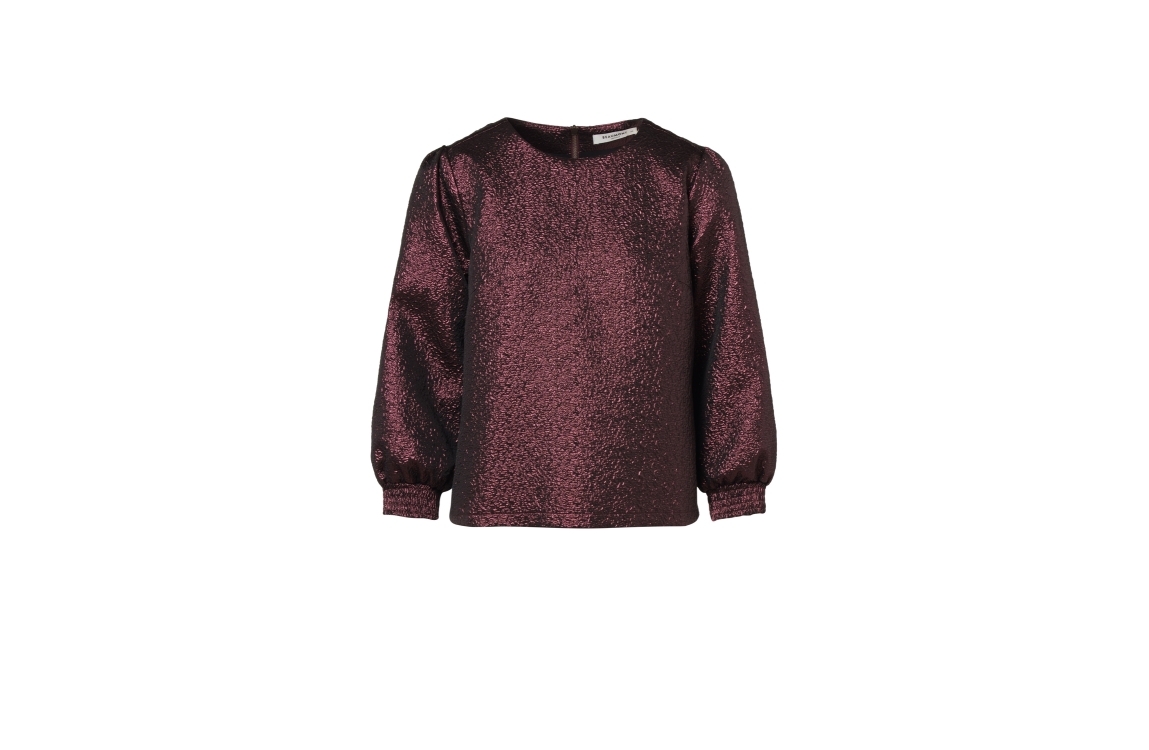 Beaumont AMINA Blouse BC14120253. Dit rechtvallende fit model sluit door middel van een rits aan de achterzijde. Deze paarse Beaumont Blouse is voorzien van een structuur. Dit model beschikt over twee pof mouwen.