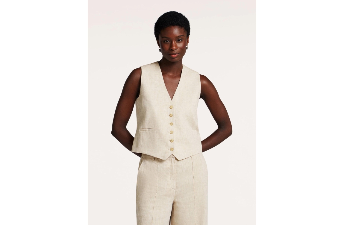 Beaumont BERLIN Gilet 2790 soft camel melange. Dit licht getailleerde model heeft een V-hals en is mouwloos. Deze beige gilet van Beaumont sluit door middel van knopen. Het model is gedetailleerd met een gesp op de rug en voorzien van twee paspelzakken.