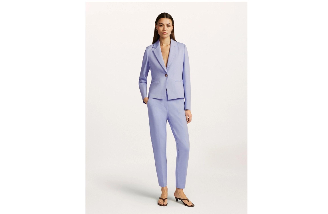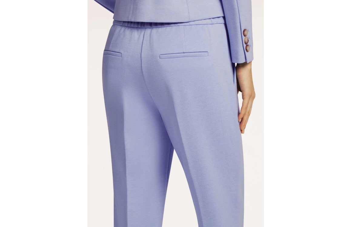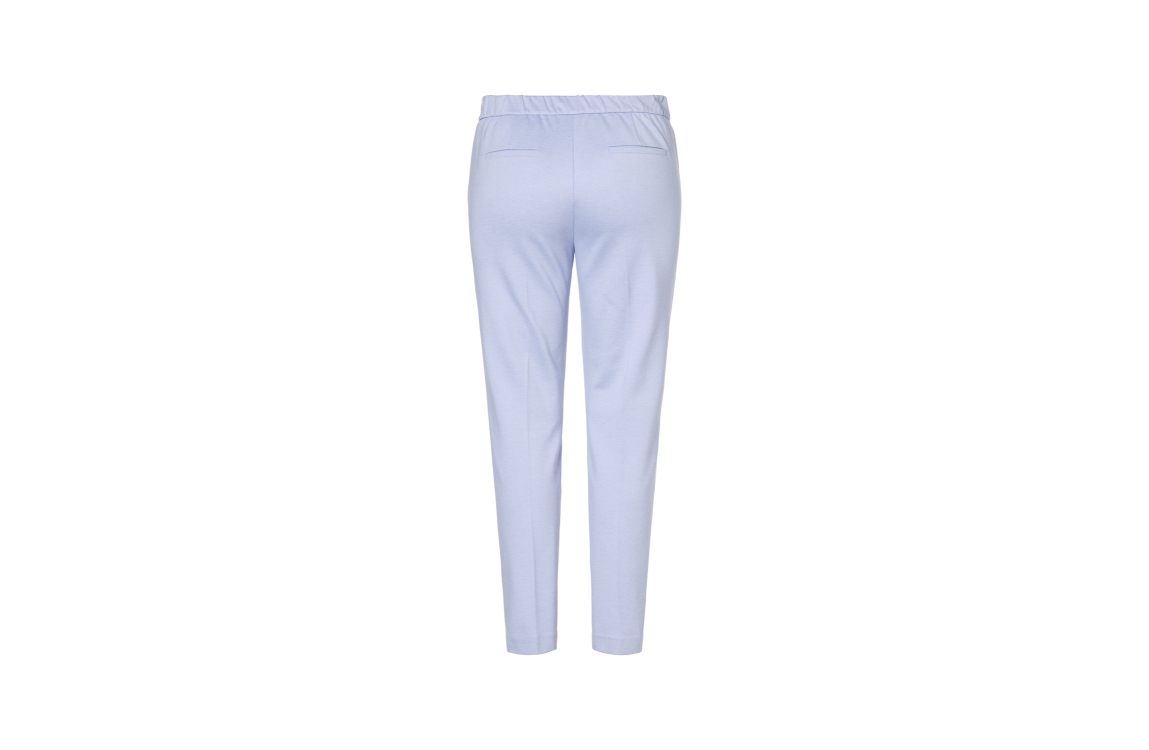 Beaumont broek Charlie 5471. Dit aangesloten model is aan de bovenzijde voorzien van een elastische boord. Deze lichtblauwe broek van Beaumont is aan de voorzijde voorzien van twee steekzakken en aan de achterzijde voorzien van twee decoratieve paspelzakken.