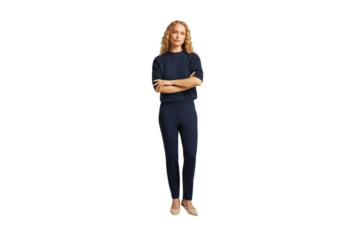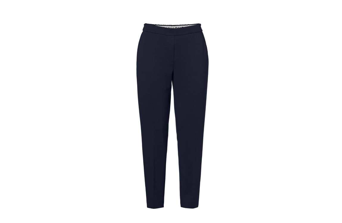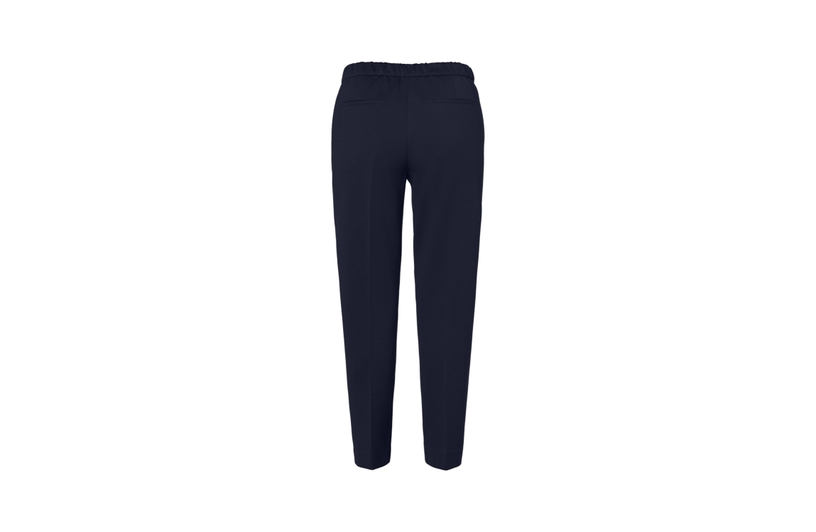 Beaumont CHARLIE Pants 5980 night blue. Dit rechtvallend model sluit aan de bovenzijde door middel van een elastische boord. Deze donkerblauwe broek van Beaumont is voorzien van schuine steekzakken op het voorpand en decoratieve paspelzakken op de achterzijde.