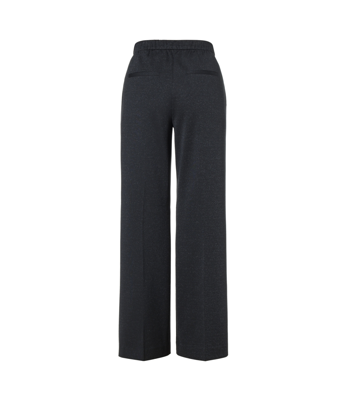 Beaumont broek BC55172253. Dit straight fit model sluit met een elastische boord. De zwarte broek van Beaumont is all-over bewerkt met glitterlurex en voorzien van twee steekzakken aan de voorzijde en twee paspelzakken aan de achterzijde. Het model is uitgevoerd in een comfortabele stretchkwaliteit.