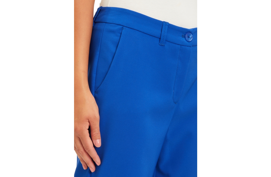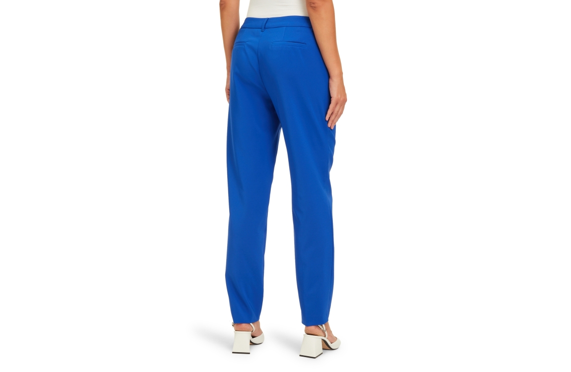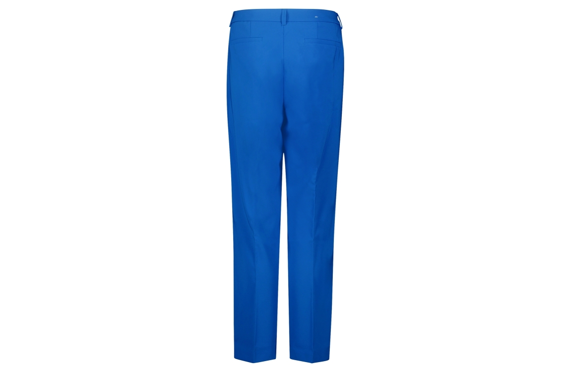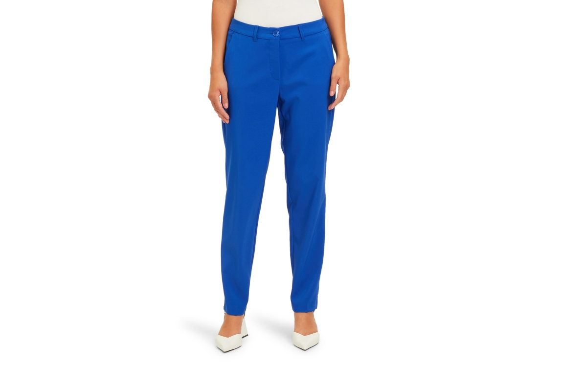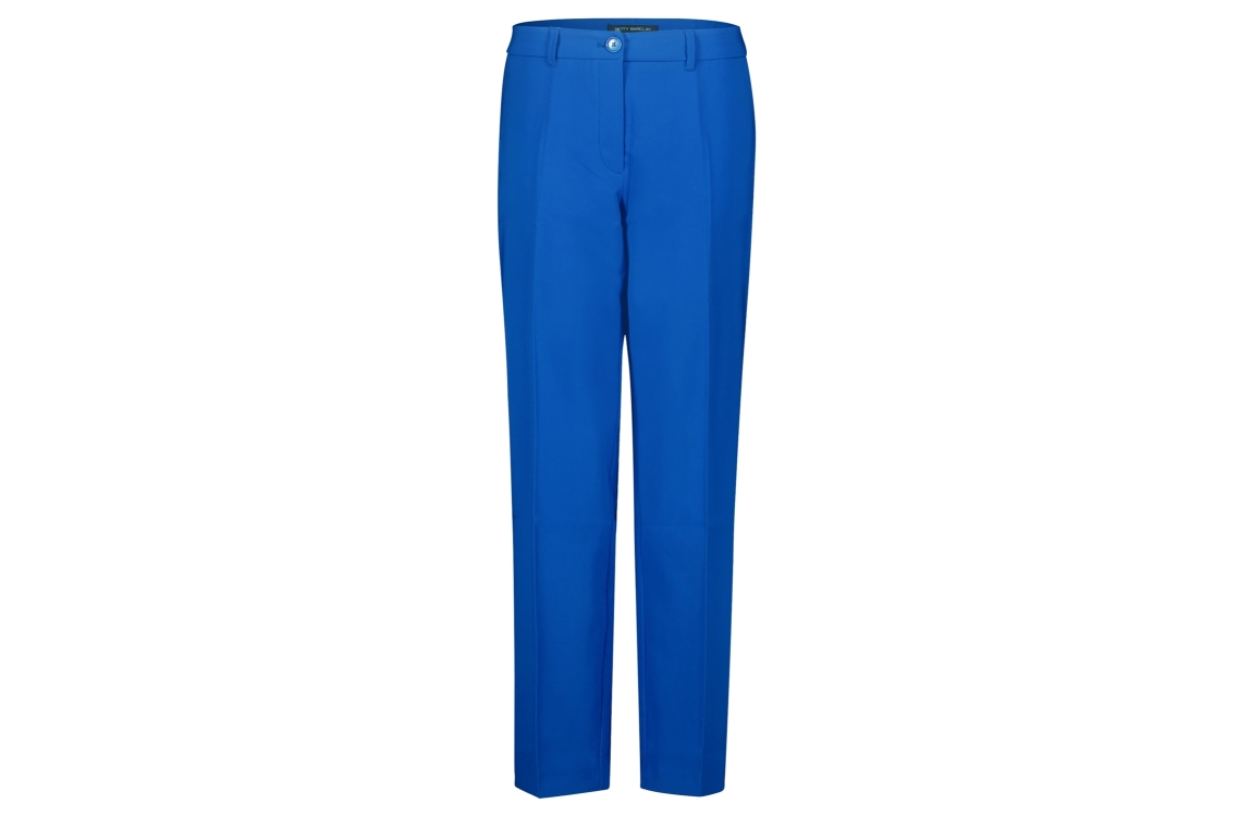 Betty Barclay 68551080. Dit rechtvallende model is voorzien van steekzakken. Deze blauwe broek van Betty Barclay sluit door middel van een rits en een knoop.