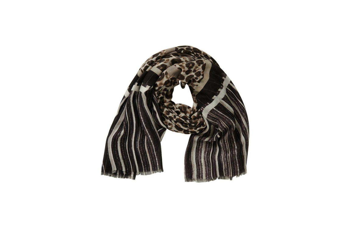 Betty Barclay sjaal 34731650 7874. Dit rechthoekige model is all-over bewerkt met een panter- en streepprint en is gedetailleerd met ruffles.