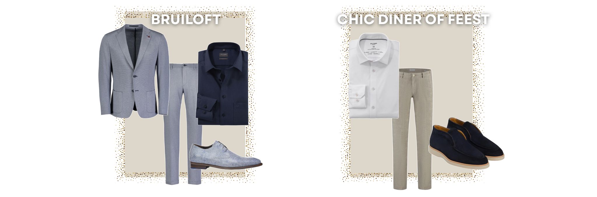Ook voor heren is er volop keuze. In onze speciale pakkenhoek vind je alles wat je nodig hebt voor een bruiloft, van klassieke tot moderne pakken. Voor andere speciale gelegenheden hebben wij nette overhemden van bijvoorbeeld Olymp, te combineren met een stijlvolle pantalon. Maak jouw set compleet met een paar loafers van Giorgio of Magnanni voor een verzorgde en elegante look.