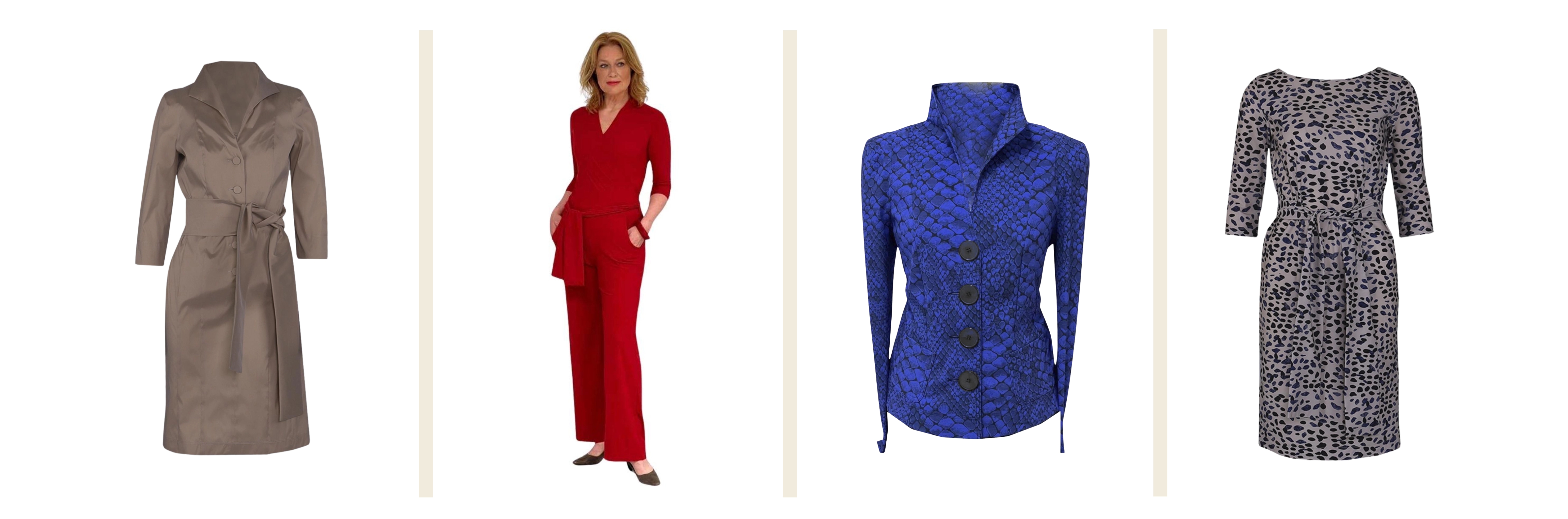De collecties zijn verkrijgbaar in de maten 34 t/m 52, en bestaan uit drie ontwerplijnen: feestkleding, casual en business. Het mooie is: de verschillende items in de collecties zijn met elkaar te combineren, zowel qua modellen, kleuren als ontwerpen.
