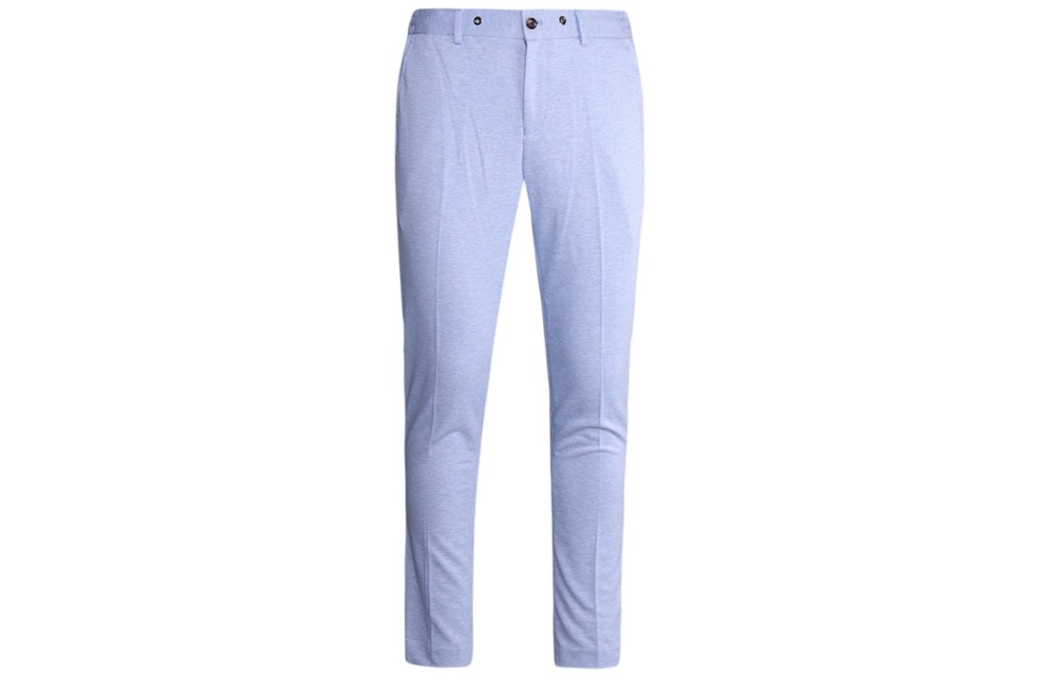Born with Appetite chino. dit rechtvallend model is voorzien van ceintuurlussen en sluit door middel van knoop en rits en koord, deze blauw wit gewerkte chino is volledig van stretch. colbert apart verkrijgbaar.