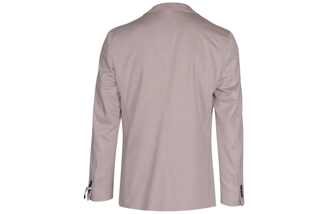 Born with Appetite colbert 251038fa85. Dit aangesloten model is voorzien van een reverskraag en heeft lange mouwen met 4 decoratieve knopen. Dit zandkleurige colbert van Born With appetite is bewerkt met een fijn klein pied de poule motief en is aan de voorzijde afgewerkt met een borstzakje voorzien van pochet en twee opgestikkte zakken. Dit model heeft twee splitten aan de achterzijde.