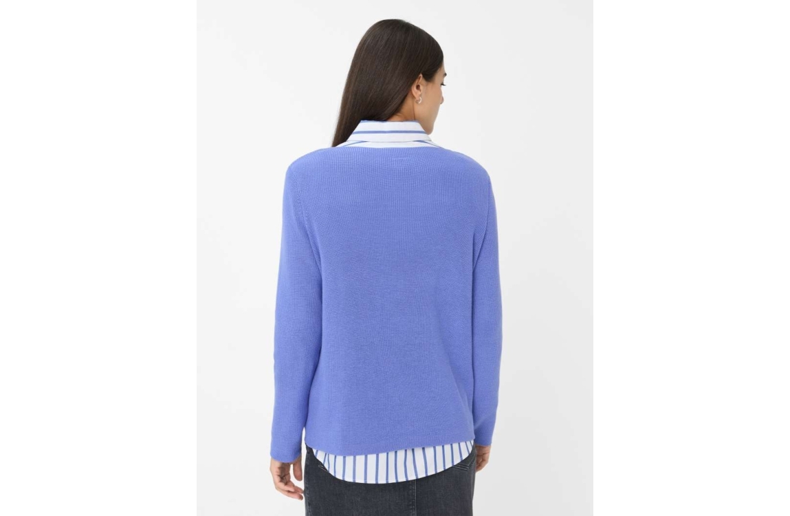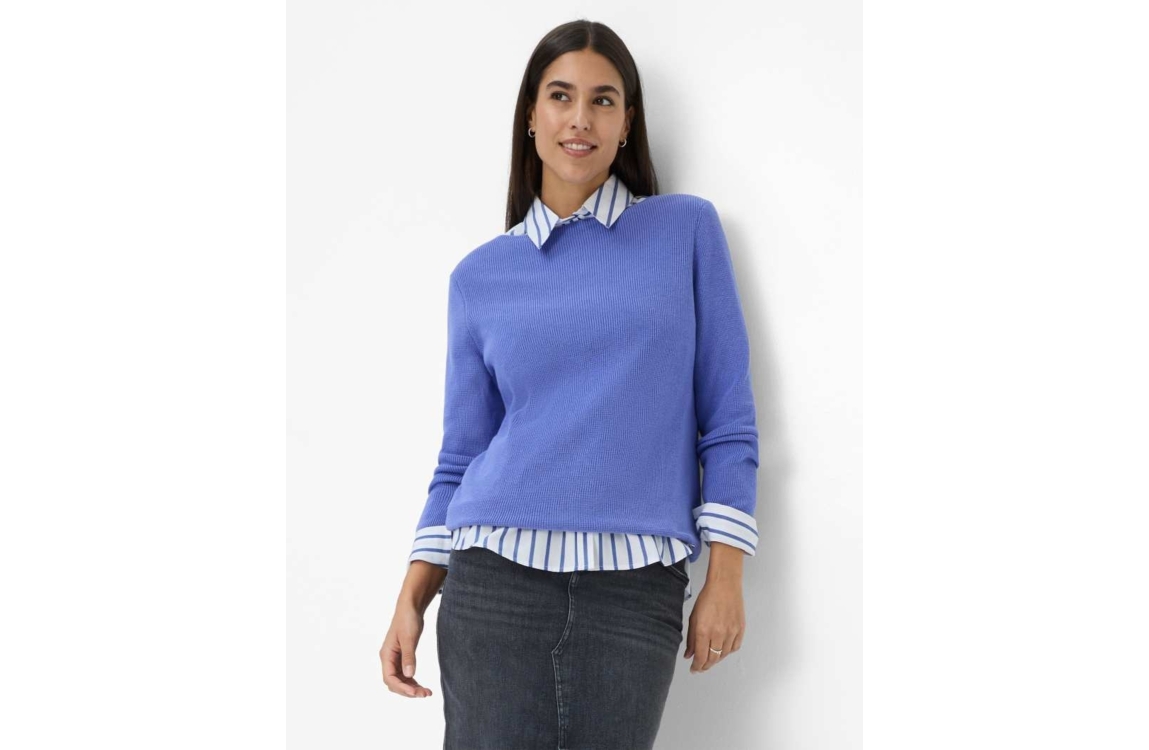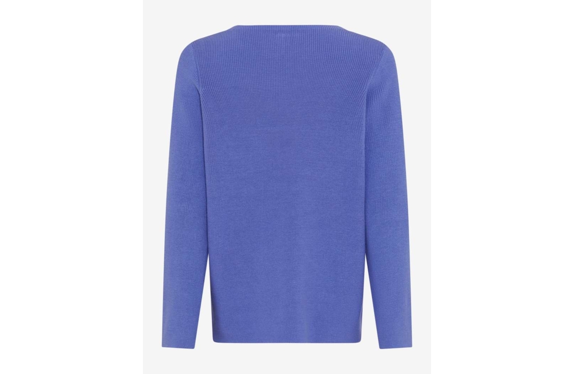 Brax pullover STYLE.LESLEY 37-0438/85. Dit rechtvallend model is voorzien van een ronde hals en heeft lange mouwen. Deze paarse pullover van Brax is uitgevoerd in een zachte kwaliteit.
