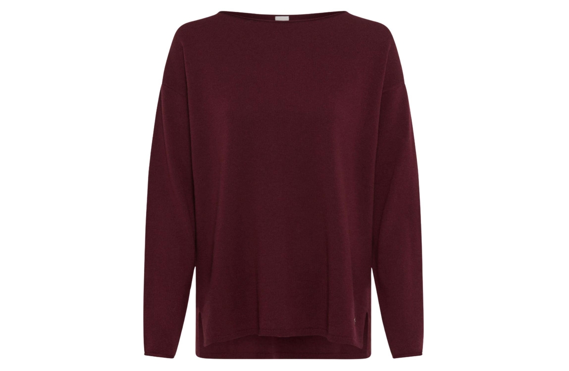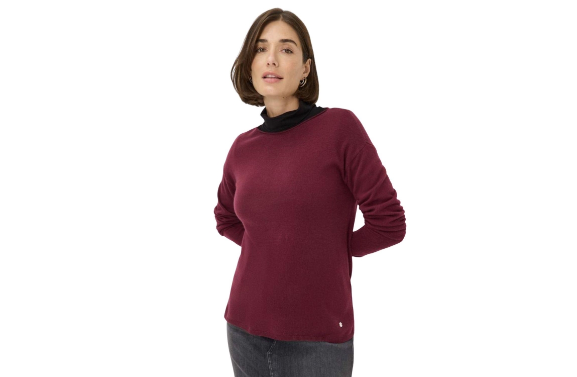 Brax trui 31-2007 90192000 40. Dit rechtvallende model heeft een ronde hals en lange mouwen. Deze burgundy trui van Brax is bewerkt met splitdetails en heeft afgewerkte boorden.