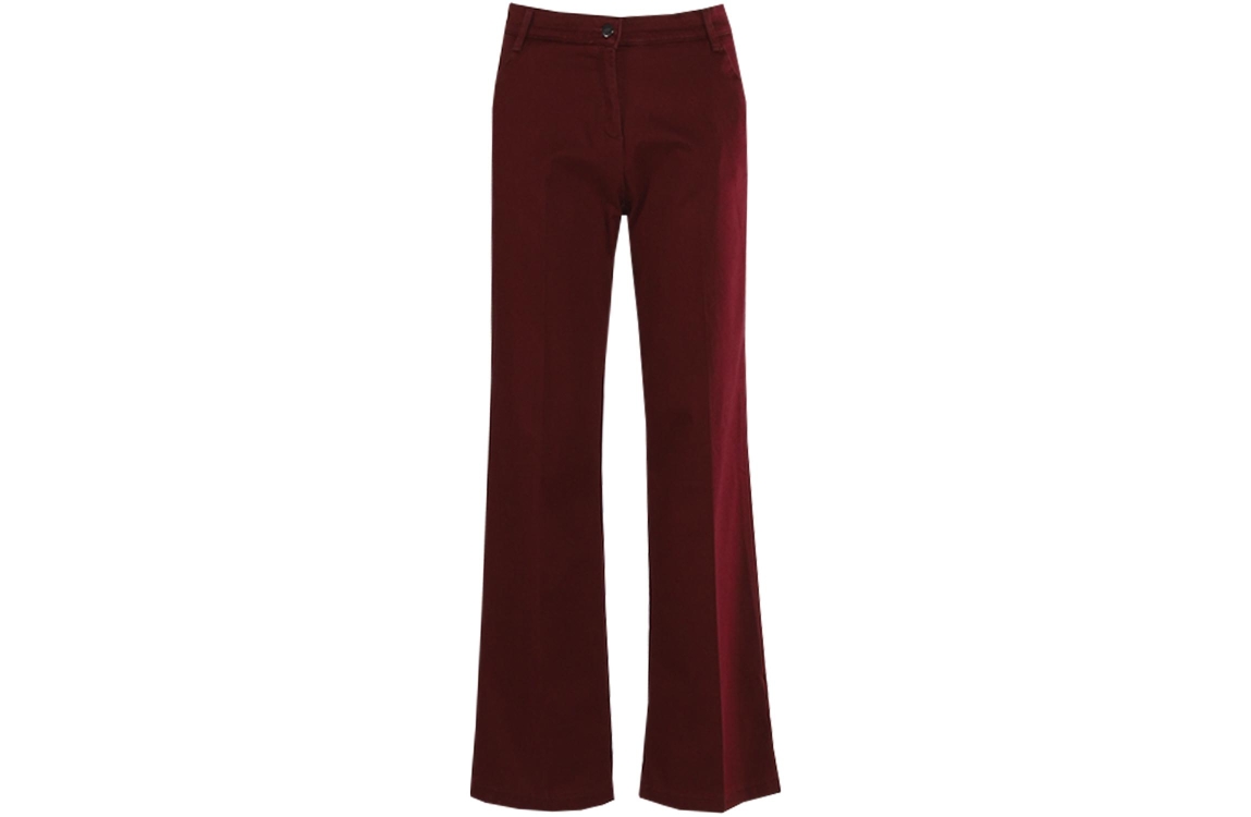 Brax broek Maine 77-1708 09967520. Dit wide leg model sluit door middel van een knoop en rits afgewerkt met ceintuurlussen. Deze bordeauxrode broek van Brax is voorzien van steekzakken aan de voor- en achterzijde.