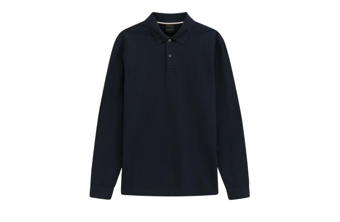 Bugatti poloshirt 85030D 8130. Dit rechtvallend model is voorzien van een kraag en heeft lange mouwen. Deze donkerblauwe poloshirt sluit aan de bovenzijde door middel van knopen.