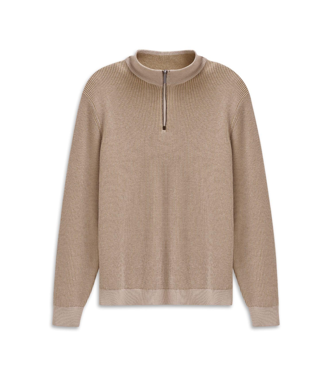Bugatti HERREN PULLOVER 1/1 ARM 030. Dit rechtvallende model is voorzien van een halve zip en heeft lange mouwen. Deze bruine pullover van Bugatti is bewerkt met een textuur.