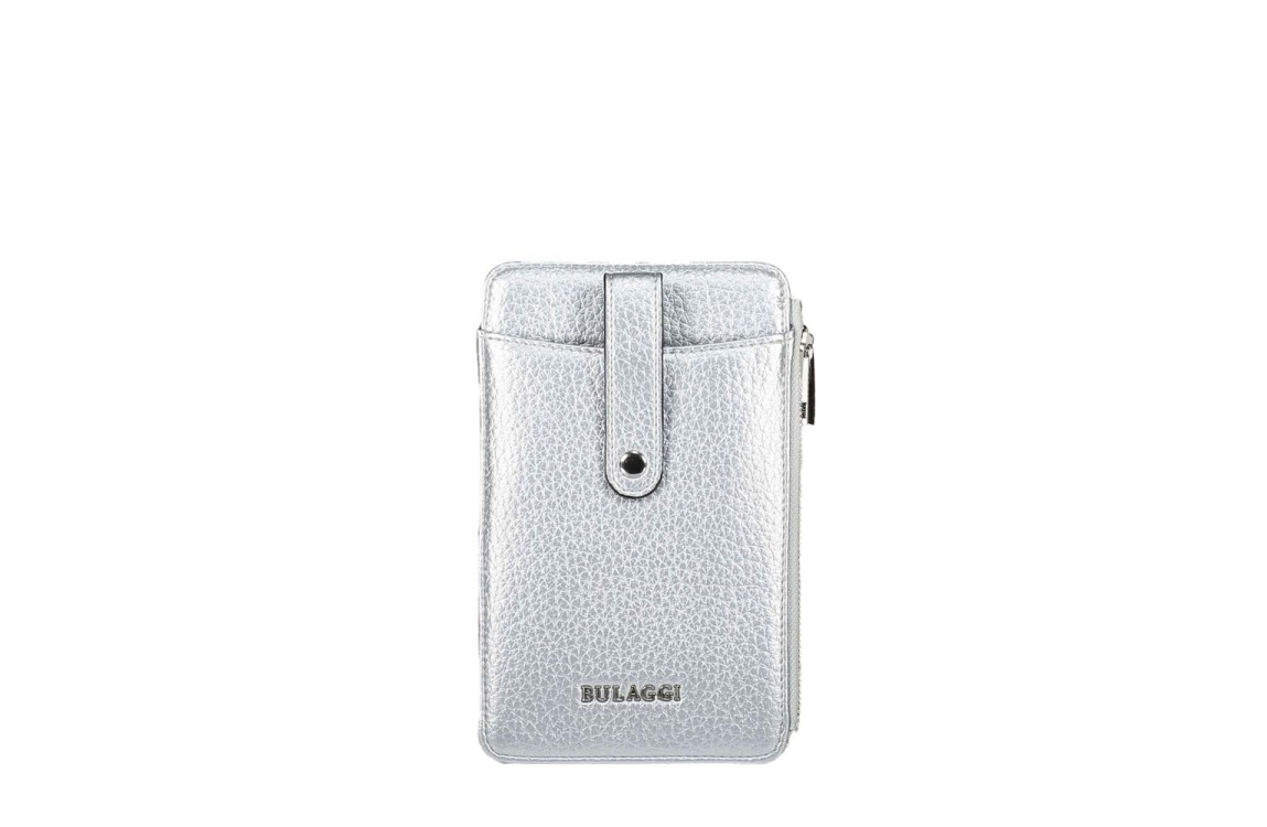 Bulaggi joelle mobiel tasje 10494. Dit mobiele tasje heeft plaats voor vier pasjes en beschikt over een ritszak en een steekvak. Dit zilverkleurige metallic tasje heeft een meegleverde schouderriem en sluit door middel van een rits.