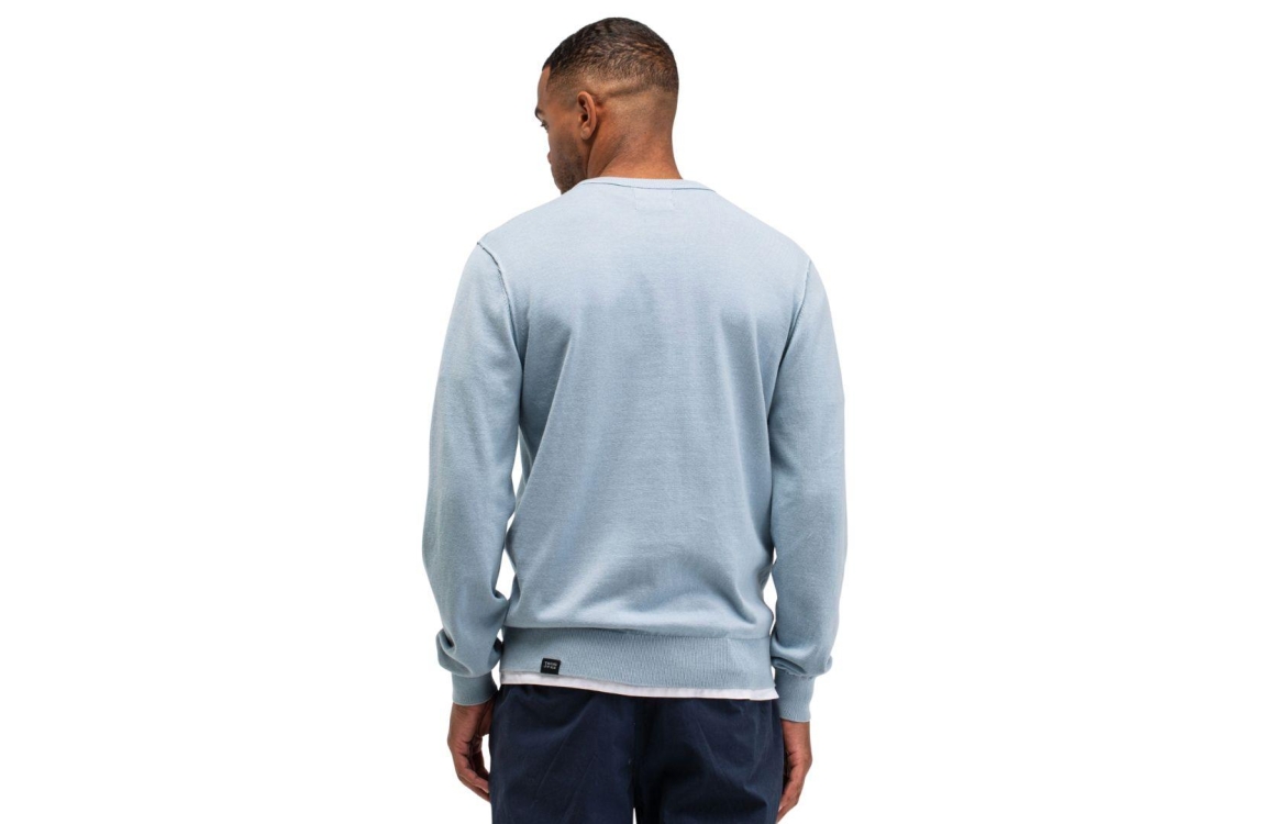Butcher of Blue trui Clifden Co Crew M2616012. Dit rechtvallend model is voorzien van een ronde hals en heeft lange mouwen. Dit lichtblauwe model is afgewerkt met het logo op de borst.