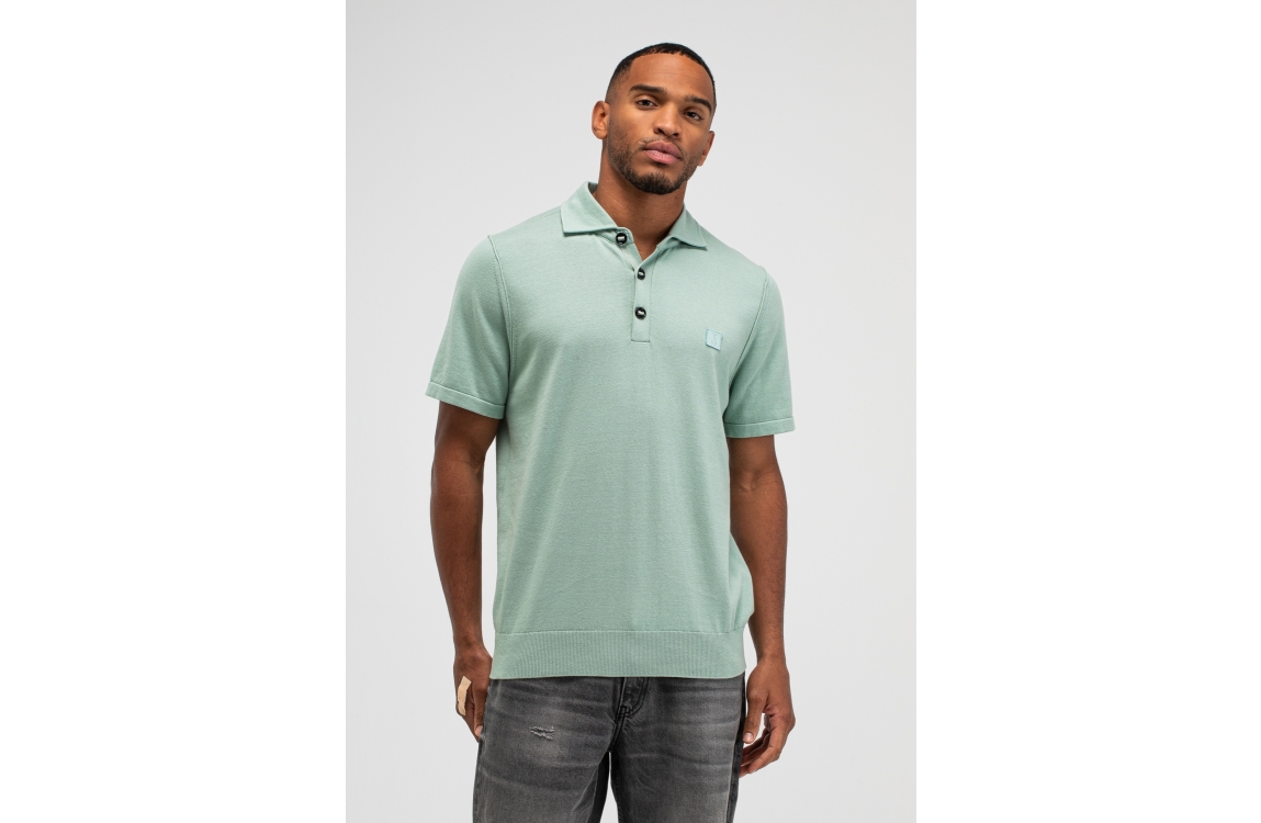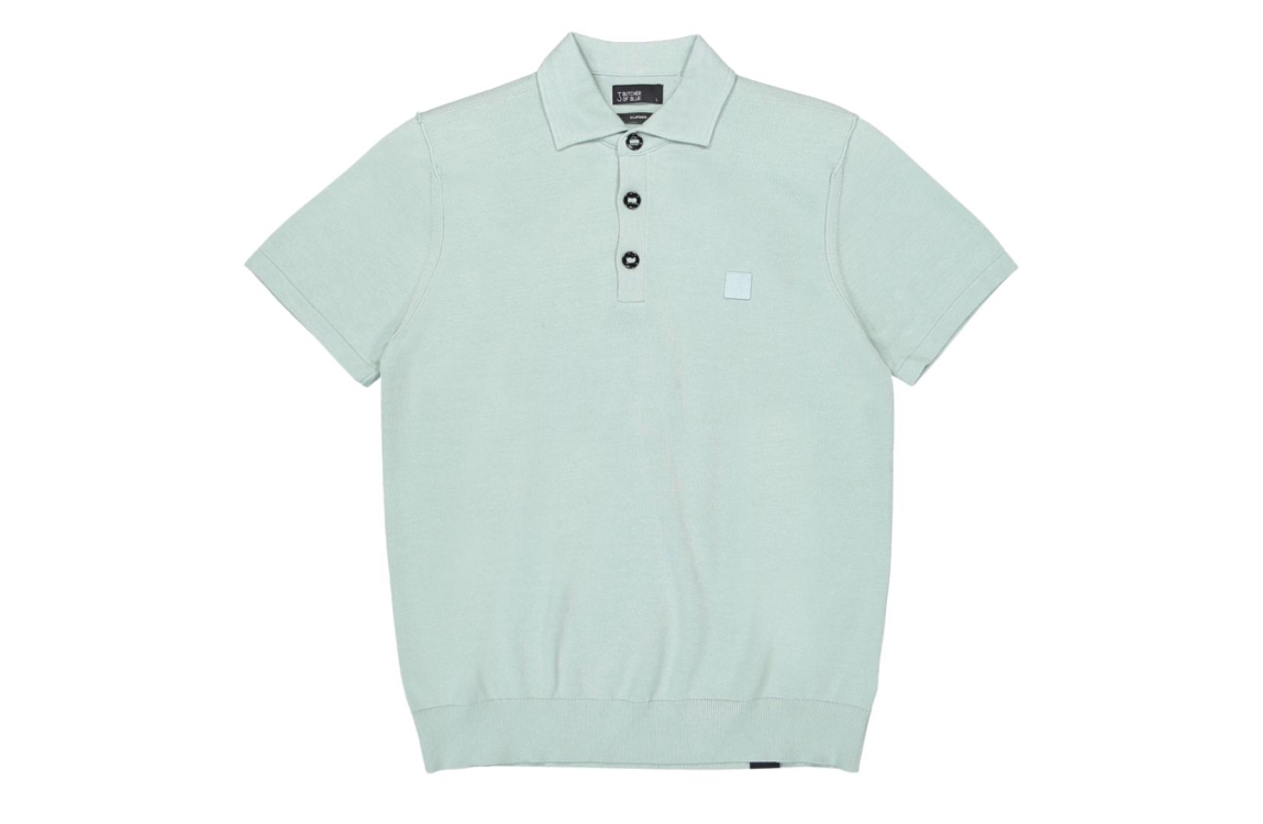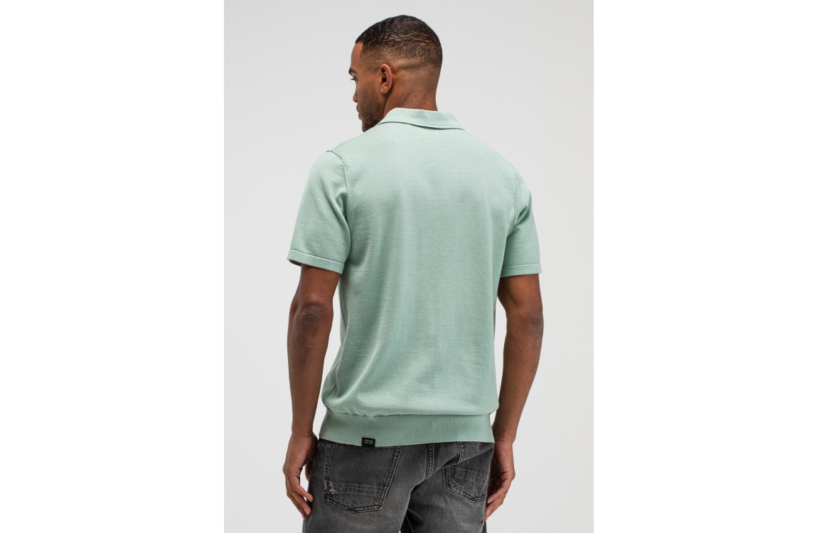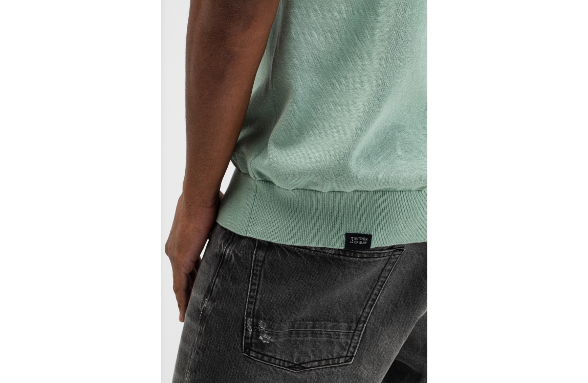 Butcher of Blue polo M2616018. Dit soepelvallend model heeft een kraag met knopen en korte mouwen. Deze lichtgroene polo van Butcher of Blue is afgewerkt met elastische boorden aan de onderzijde.