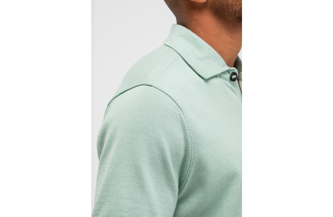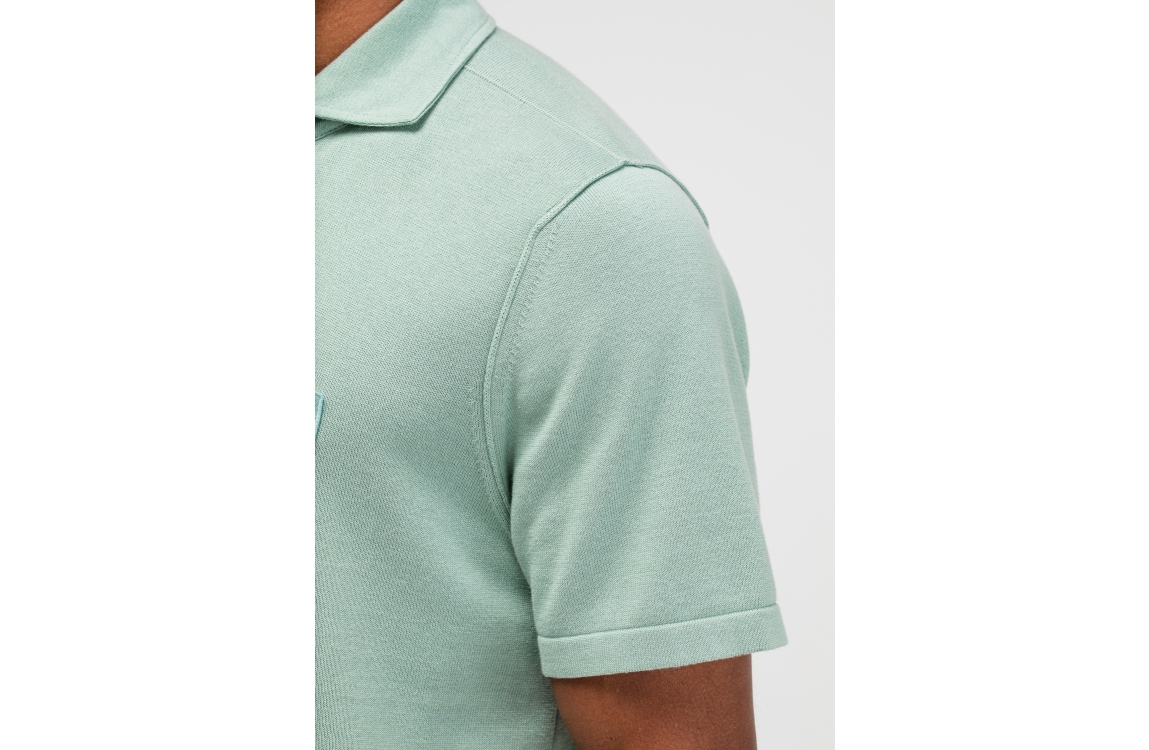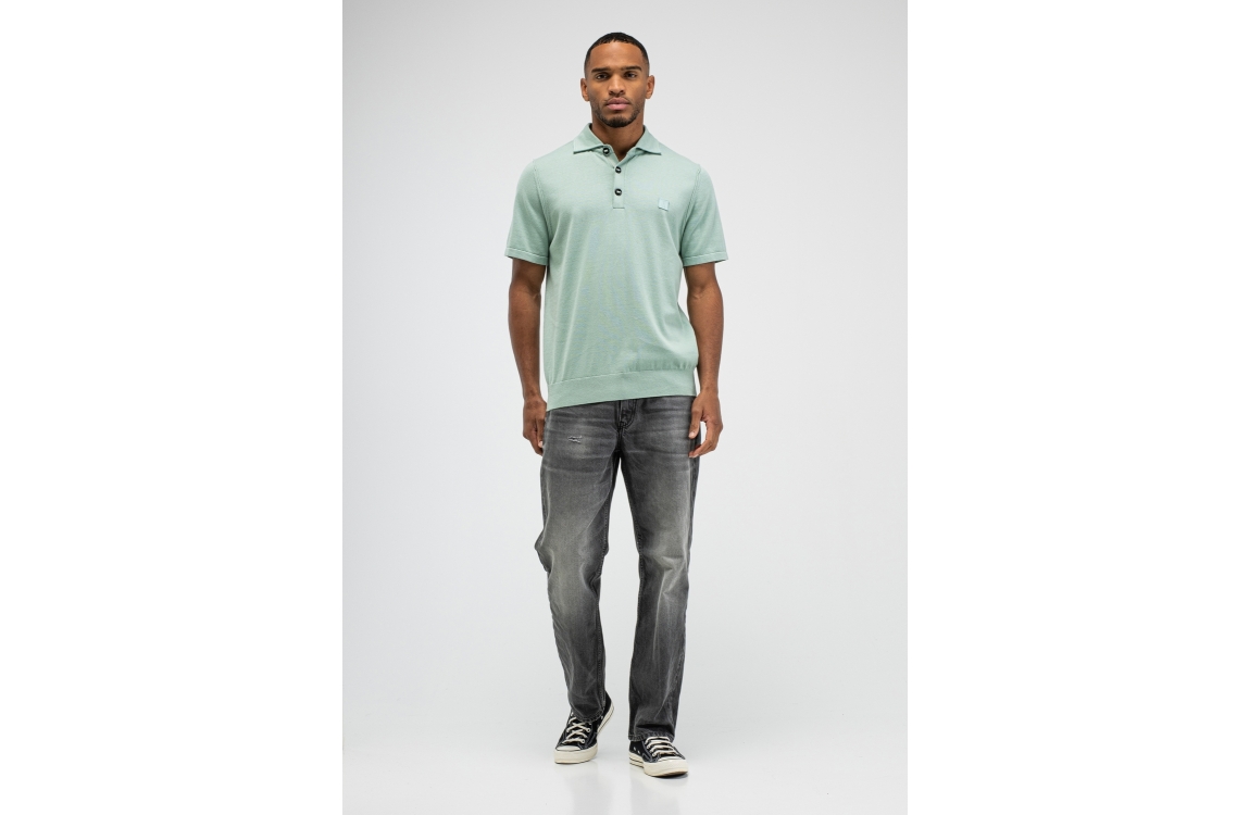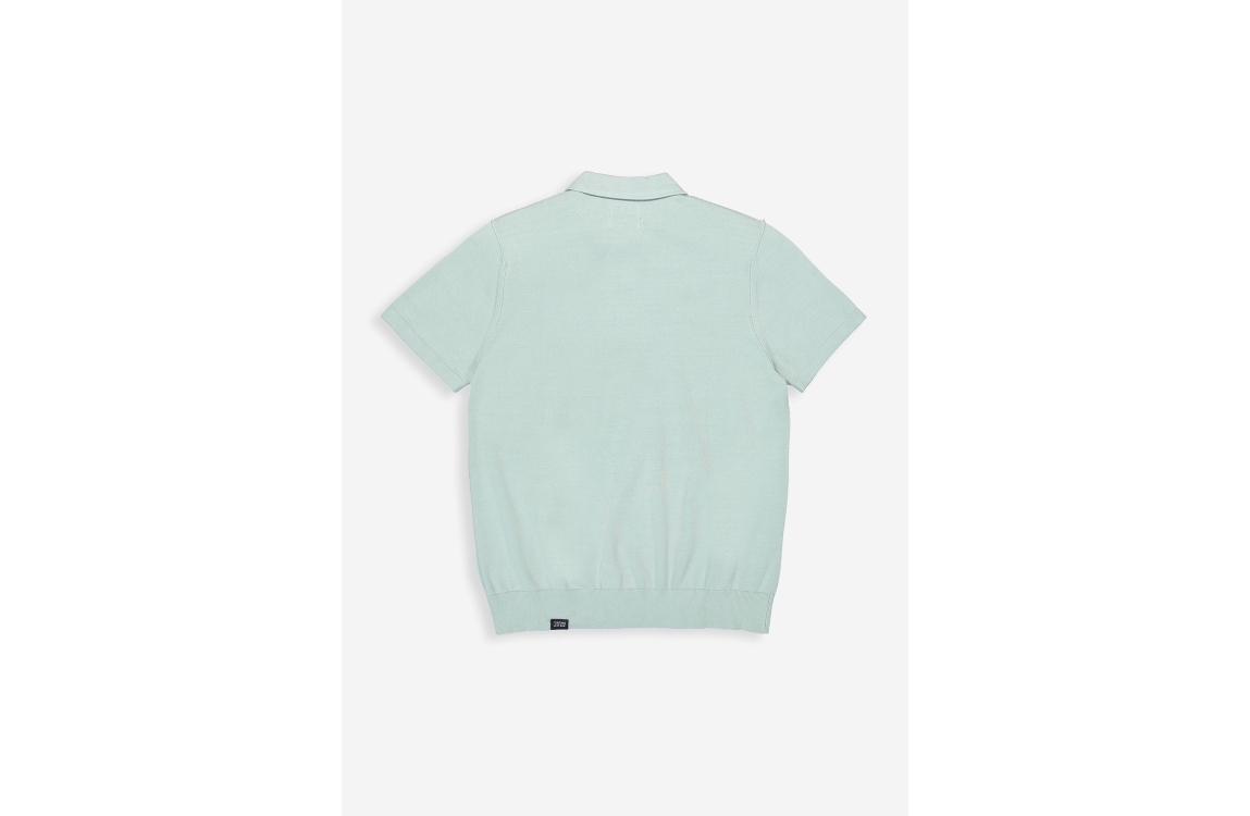 Butcher of Blue polo M2616018. Dit soepelvallend model heeft een kraag met knopen en korte mouwen. Deze lichtgroene polo van Butcher of Blue is afgewerkt met elastische boorden aan de onderzijde.