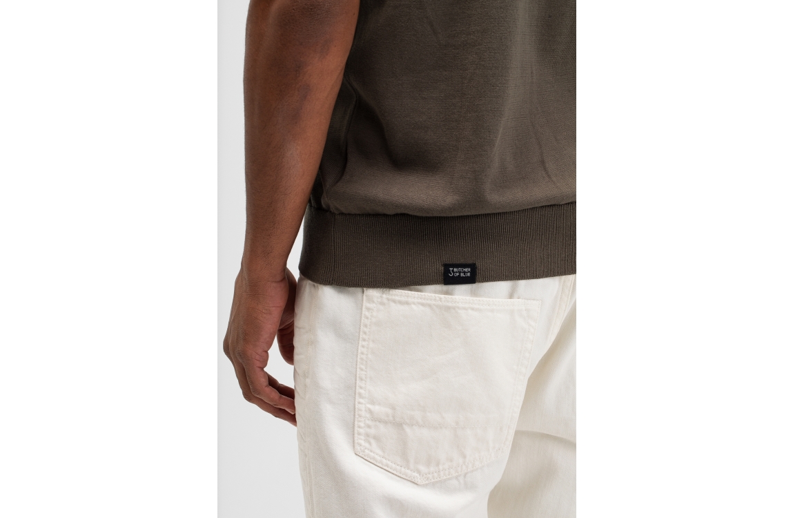 Butcher of Blue polo M2616018. Dit soepelvallend model heeft een kraag met knopen en korte mouwen. Deze donkergroene polo van Butcher of Blue is afgewerkt met elastische boorden aan de onderzijde.