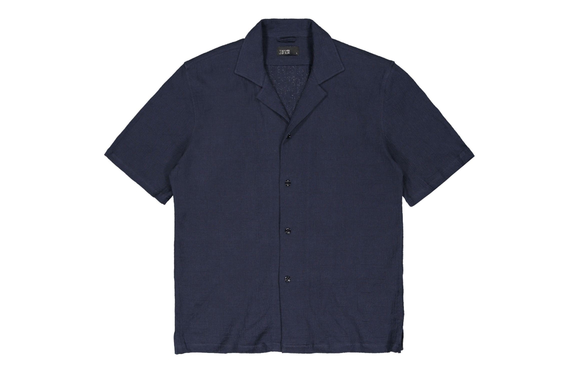 Butcher of Blue Ripley Structure Shirt 890 alaska blue. Dit rechtvallende model is voorzien van een kraag en heeft korte mouwen. Dit donkerblauwe shirt van Butcher of Blue sluit door middel van knopen en is bewerkt met een structuur.