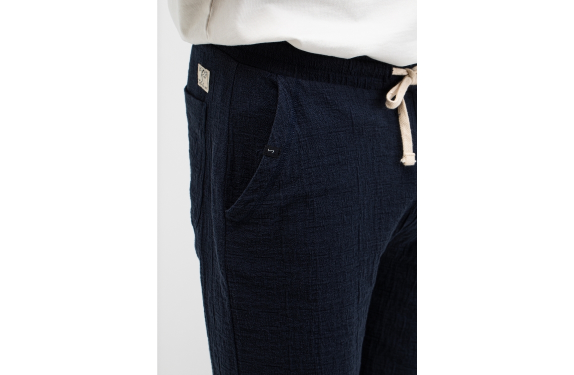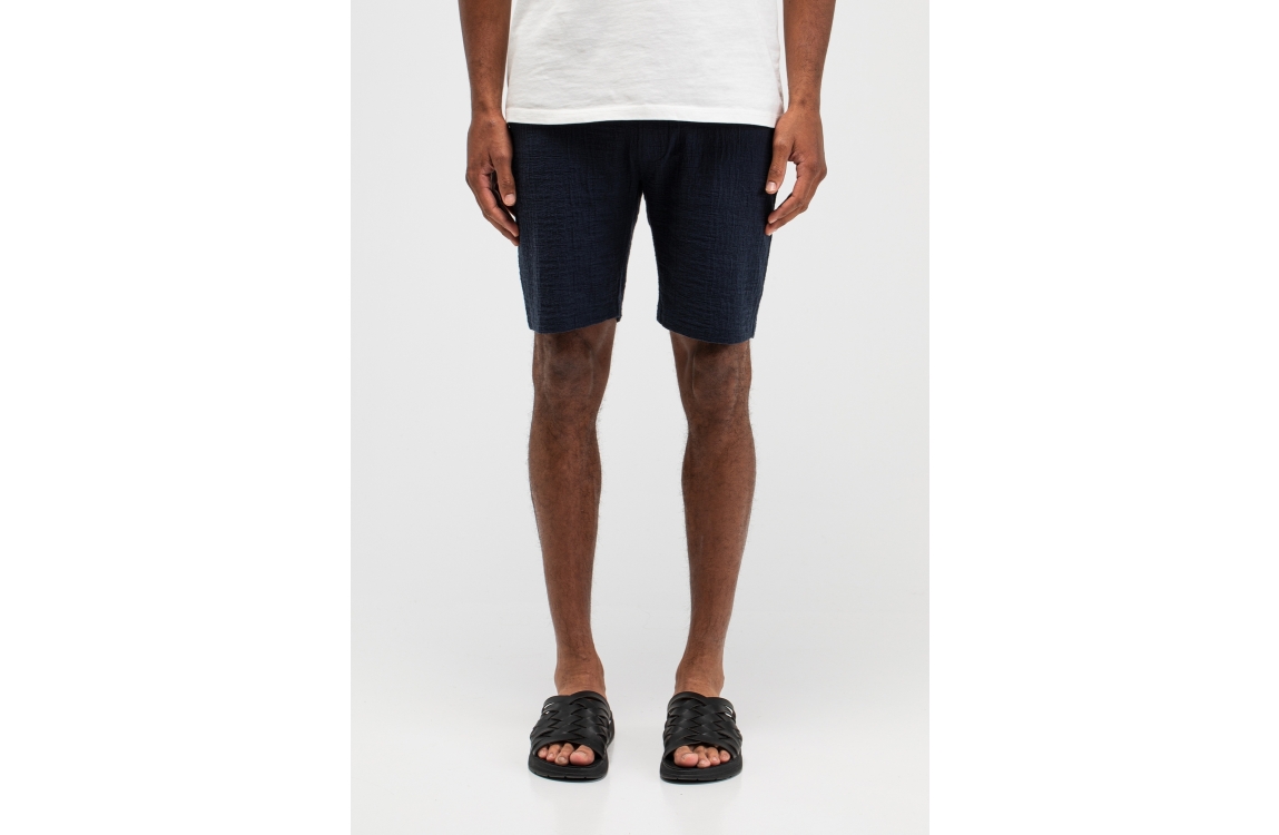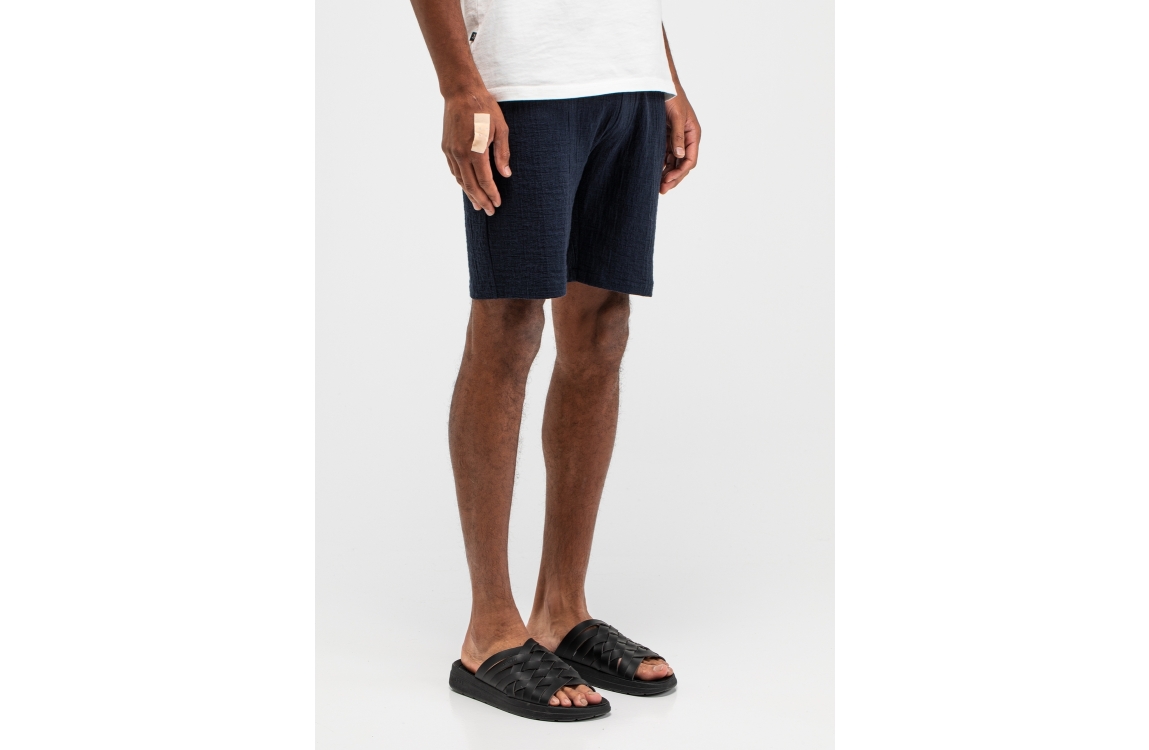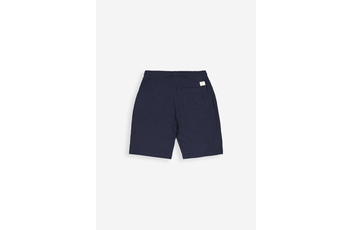 Butcher of Blue Ripley Structure Short 890 alaska blue. Dit rechtvallende model sluit door middel van een elastische boord met trekkoorden. Deze donkerblauwe short van Butcher of Blue is voorzien van twee steekzakken aan de voorzijde en een steekzak aan de achterzijde. Dit model is all-over bewerkt met een structuur.