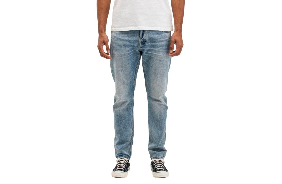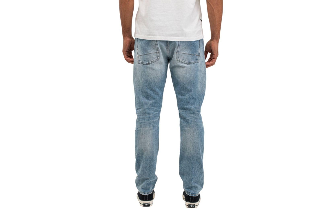 Butcher of Blue jeans Stockton Straight Redding M2511011. Dit ruimere model sluit door middel van een knoop en rits afgewerkt met ceintuurlussen. Deze straight denim van Butcher of Blue is uitgevoerd in een 5-pocket model.
