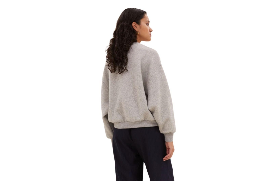 By-Bar Amsterdam sweater 25518909. Dit wijdvallend model heeft een ronde hals en lange mouwen met verlaagde schoudernaden. Deze grijze sweater van By-Bar Amsterdam is op het voorpand bewerkt met een tekstopdruk 'LUCKY' en is afgewerkt met boorden. Het model is 178 centimeter, en draagt maat S.