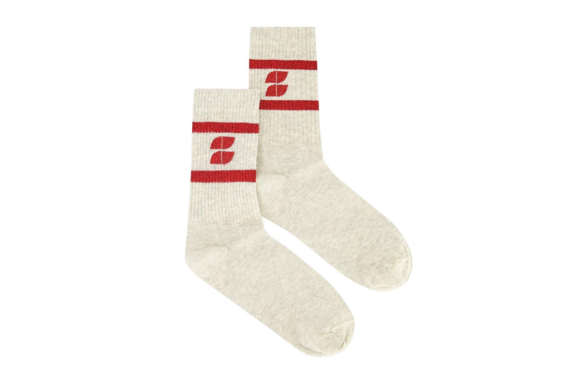 By-Bar Amsterdam Logo sparkle grey socks 332 Lipstick. Deze grijze sokken van By-Bar zijn voorzien van een rode glitter rand en het logo aan de bovenzijde.