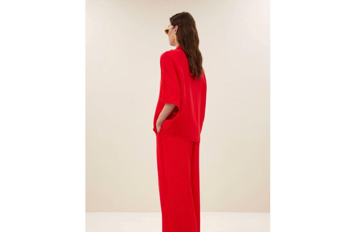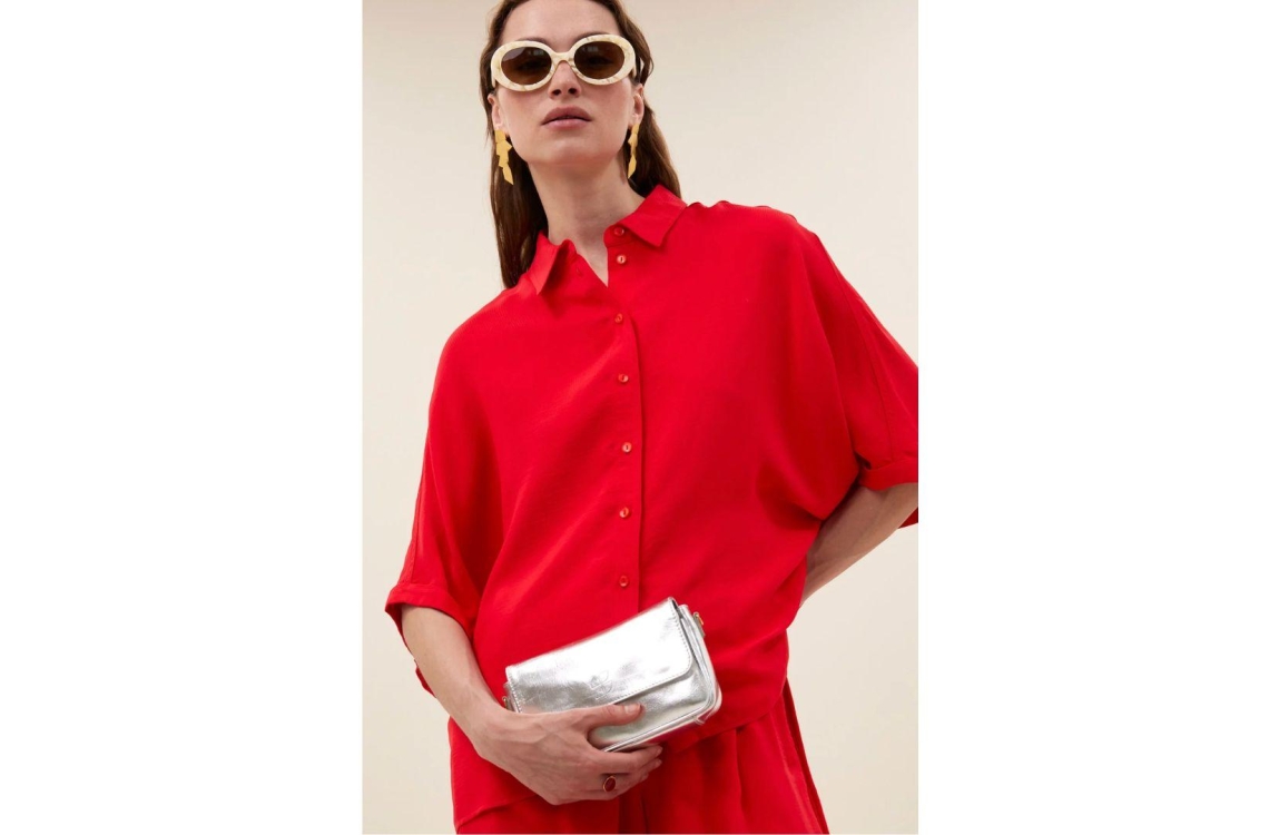By-Bar Amsterdam blouse bsunny stain stripe 26112071. Dit oversized model is voorzien van een kraag en heeft halflange mouwen. Deze rode gestreepte blouse van By-Bar sluit door middel van knopen en is uitgevoerd in een glanzende stof kwaliteit.