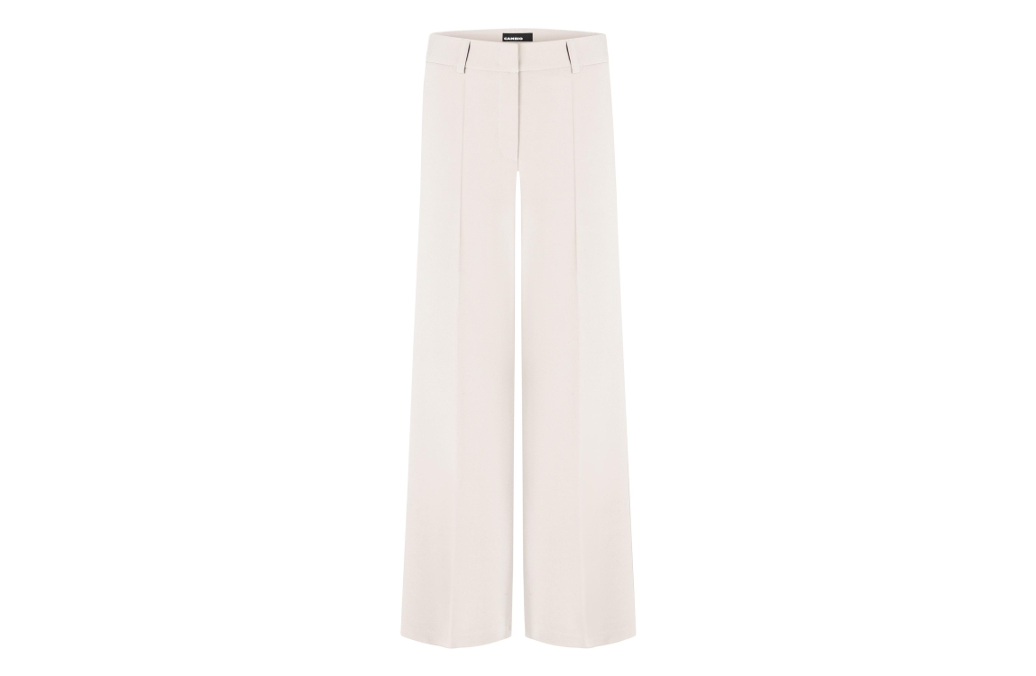 Cambio broek Ameilie 6052-0246-02. Dit straight fit model sluit door middel van schuifknopen met ritssluiting en is voorzien van ceintuurlussen. Deze off-white broek van Cambio is gedetailleerd met een plooi over de lengte.