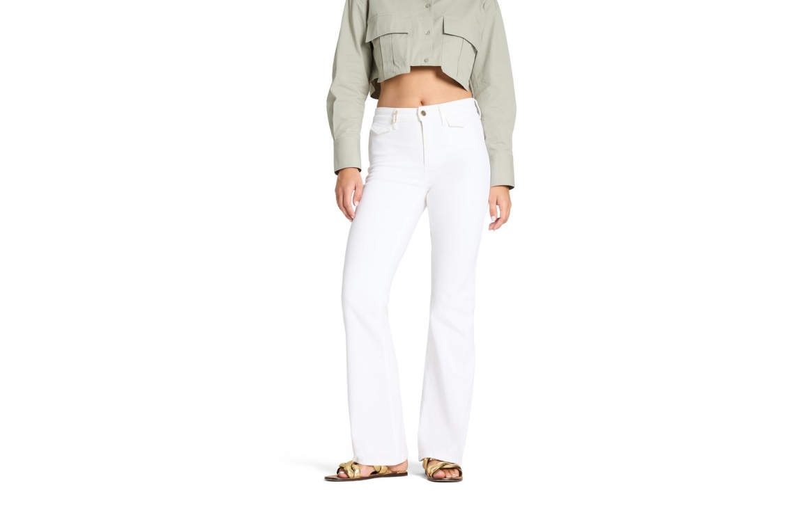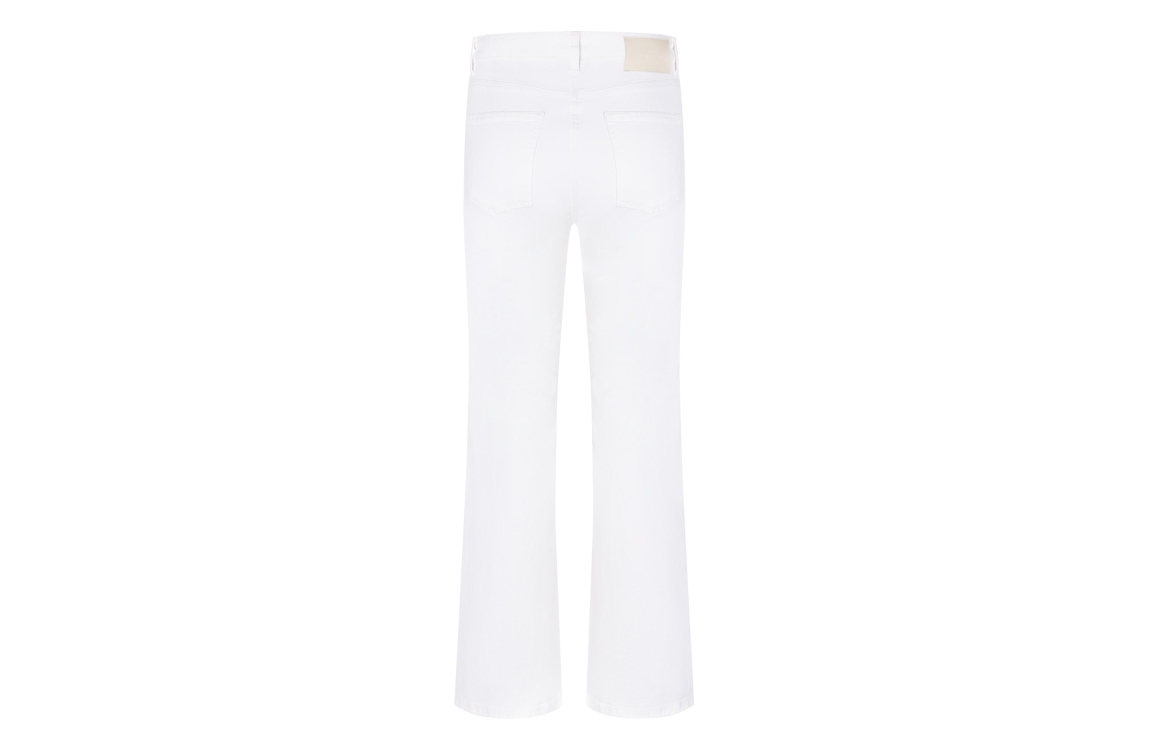 Cambio Fabienne jeans 9049-0095-01. Dit rechtvallend model sluit door middel van een knoop en rits. Deze witte jeans van Cambio is voorzien van riemlusjes, verschillende zakken en afgewerkt met een gouden detail aan de bovenzijde.