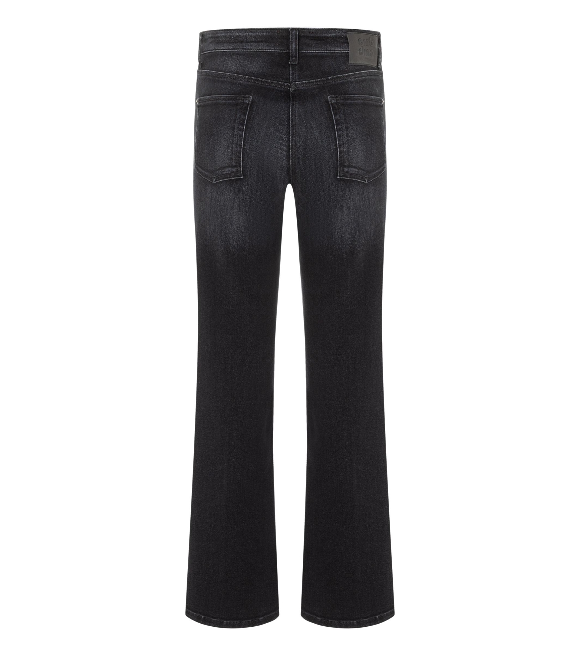 Cambio Paris broek 9281-0012-55 5038. Dit flared fit model sluit door middel van knoop- en ritssluiting en is voorzien van ceintuurlussen. Deze zwarte broek van Cambio is voorzien van twee steekzakken aan de voor- en achterzijde en is uitgevoerd in stretchkwaliteit.