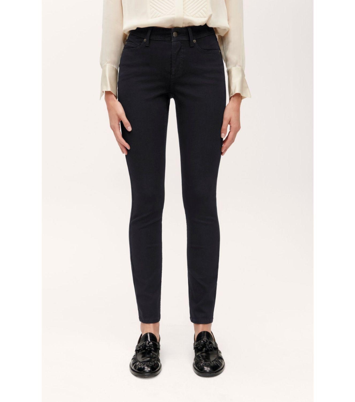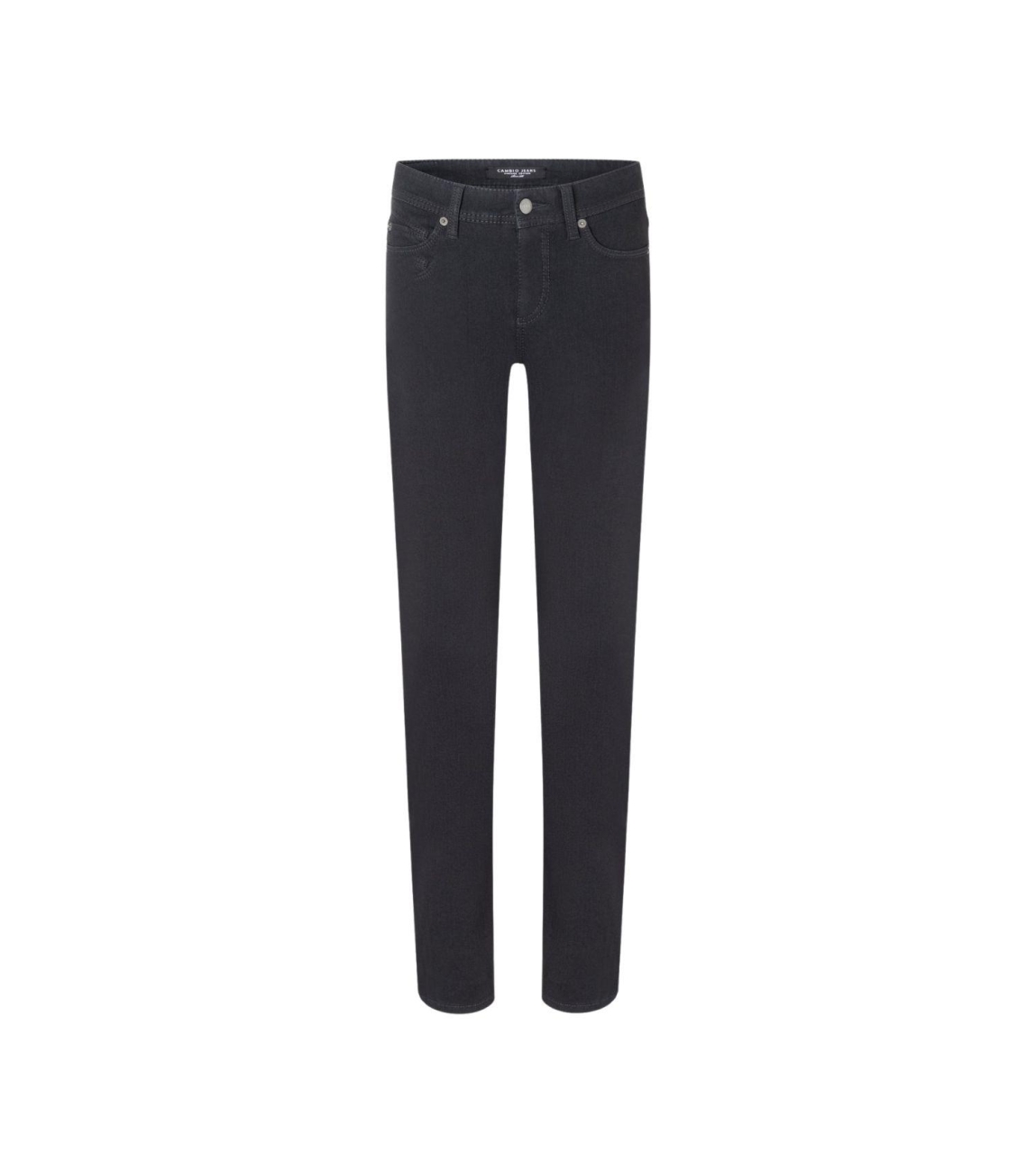 Cambio Parla 5000 Basic rinsed wash black denim. Dit regular fit model sluit aan de bovenzijde door middel van een knoop en een rits. Deze zwarte jeans van Cambio is voorzien van riemlusjes, 5 pocket zakken en gemaakt van een stretch materiaal.