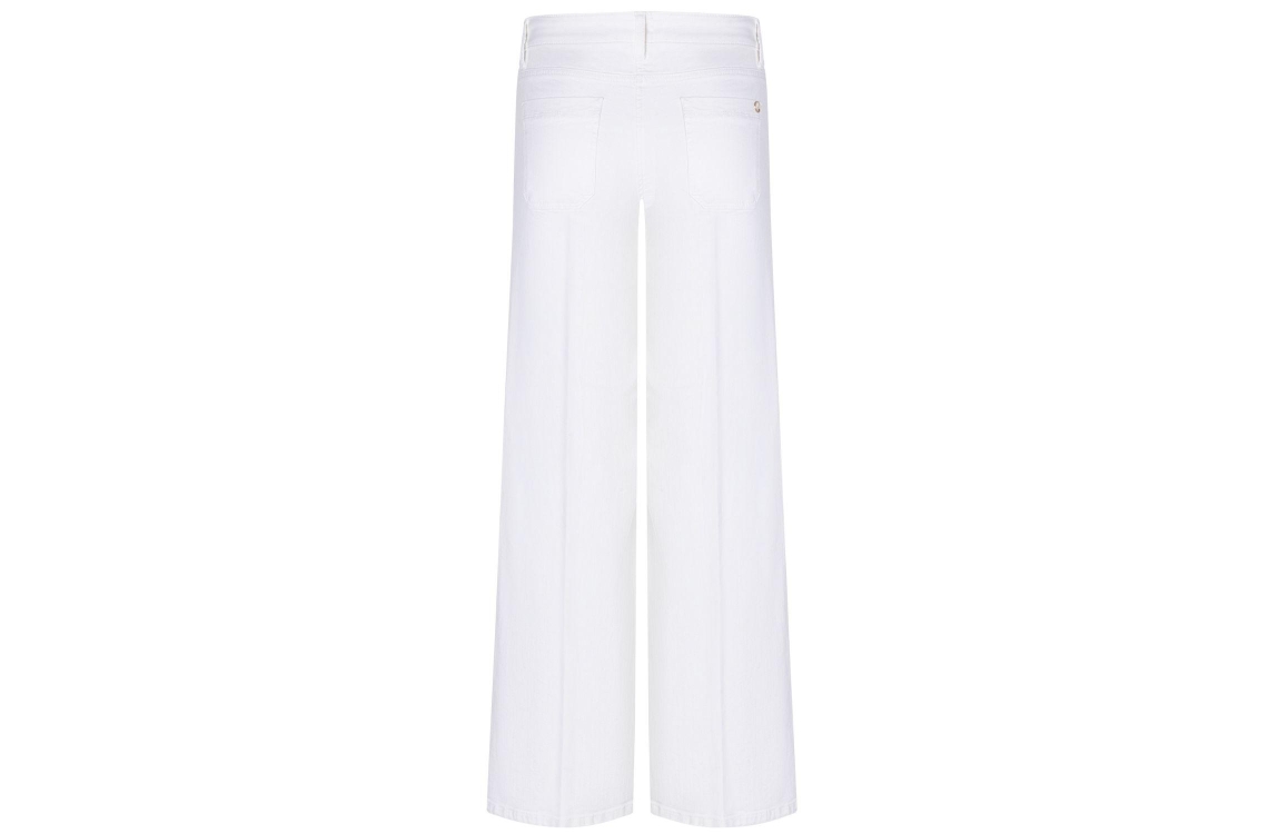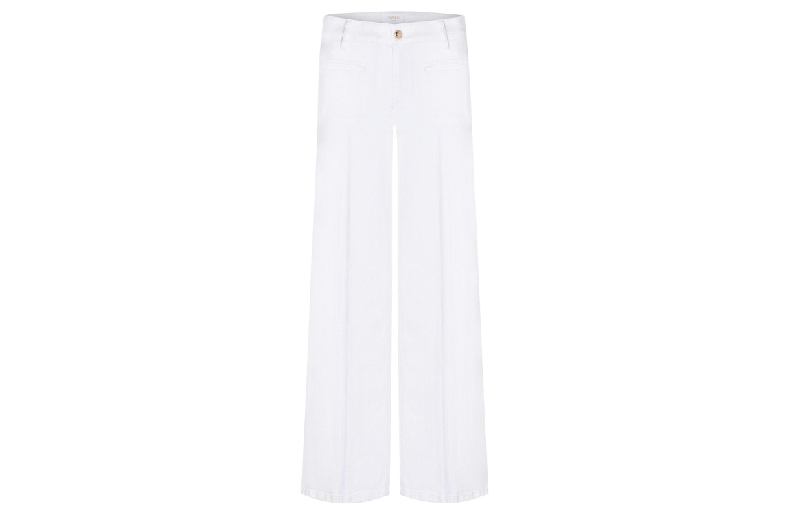 Cambio Tess 5113 Pure white stone. Dit straight fit model sluit door middel van een knoop- en ritssluiting en is voorzien van ceintuurlussen. Deze witte jeans van Cambio is voorzien van twee gedetailleerde zakken aan de voorzijde en twee steekzakken aan de achterzijde.