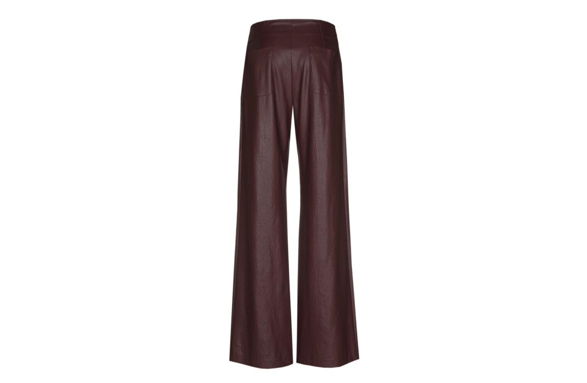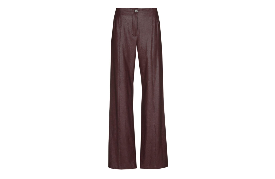 Caroline Biss Broek vegan leather 55 Wine. Dit rechtvallende model sluit aan de bovenzijde door middel van een rits en knoop. Deze rode broek van Caroline Biss heeft twee steekzakken in de zijnaad en opgestike zakken op de achterzijde. Dit model heeft subtiele sierstiksels aan de voorzijde op de pijpen en is uitgevoerd in vegan leater. Deze broek heeft een normale waist.