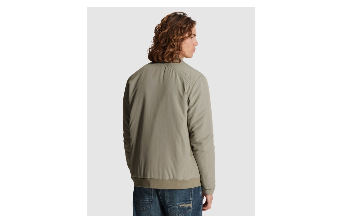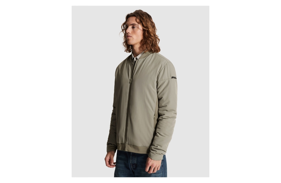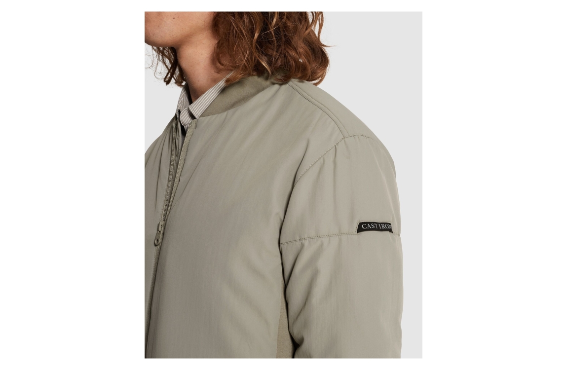 Cast Iron Bomber jack CJA2602142. Dit wijdvallend model heeft een ronde hals, lange mouwen en sluit door middel van een rits. Dit groene bomberjack van Cast Iron is voorzien van elastische boorden aan de zijkant en uitgevoerd in een puf-materiaal.