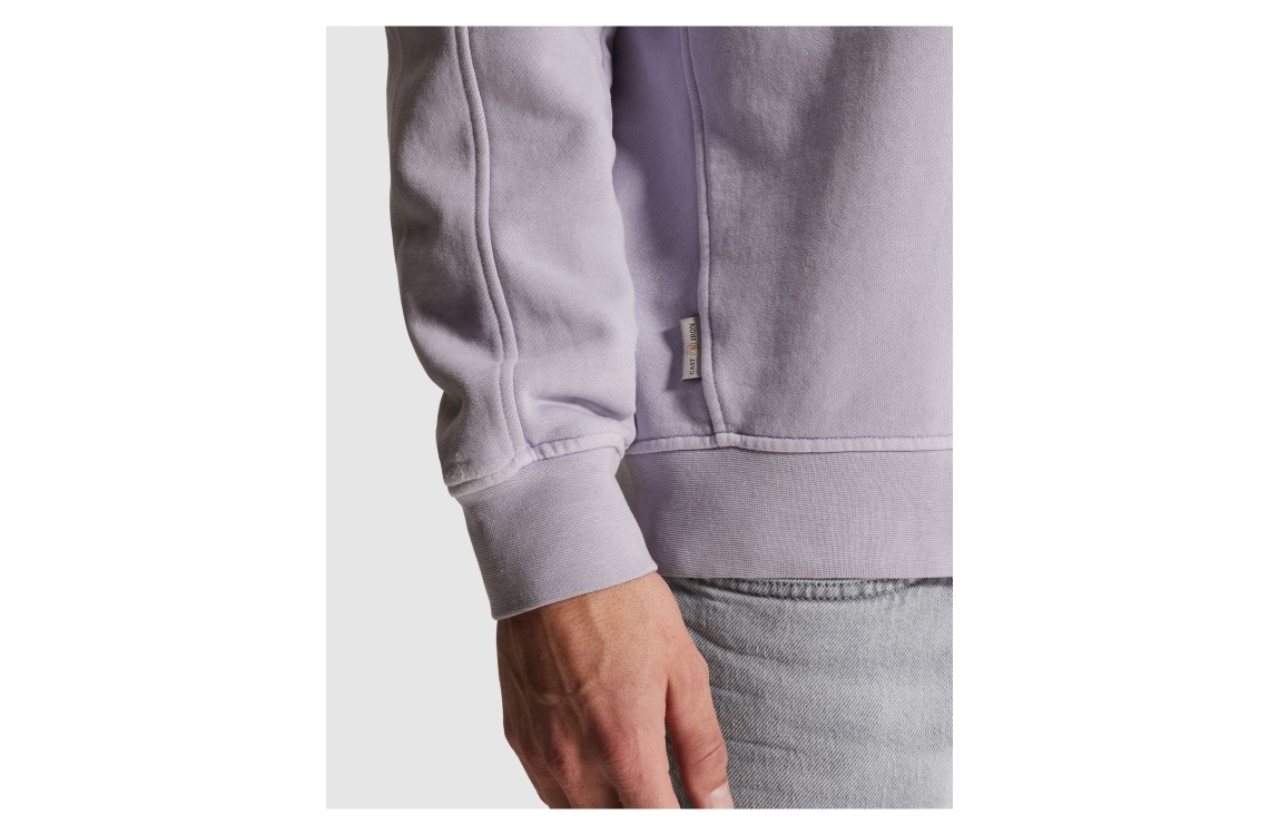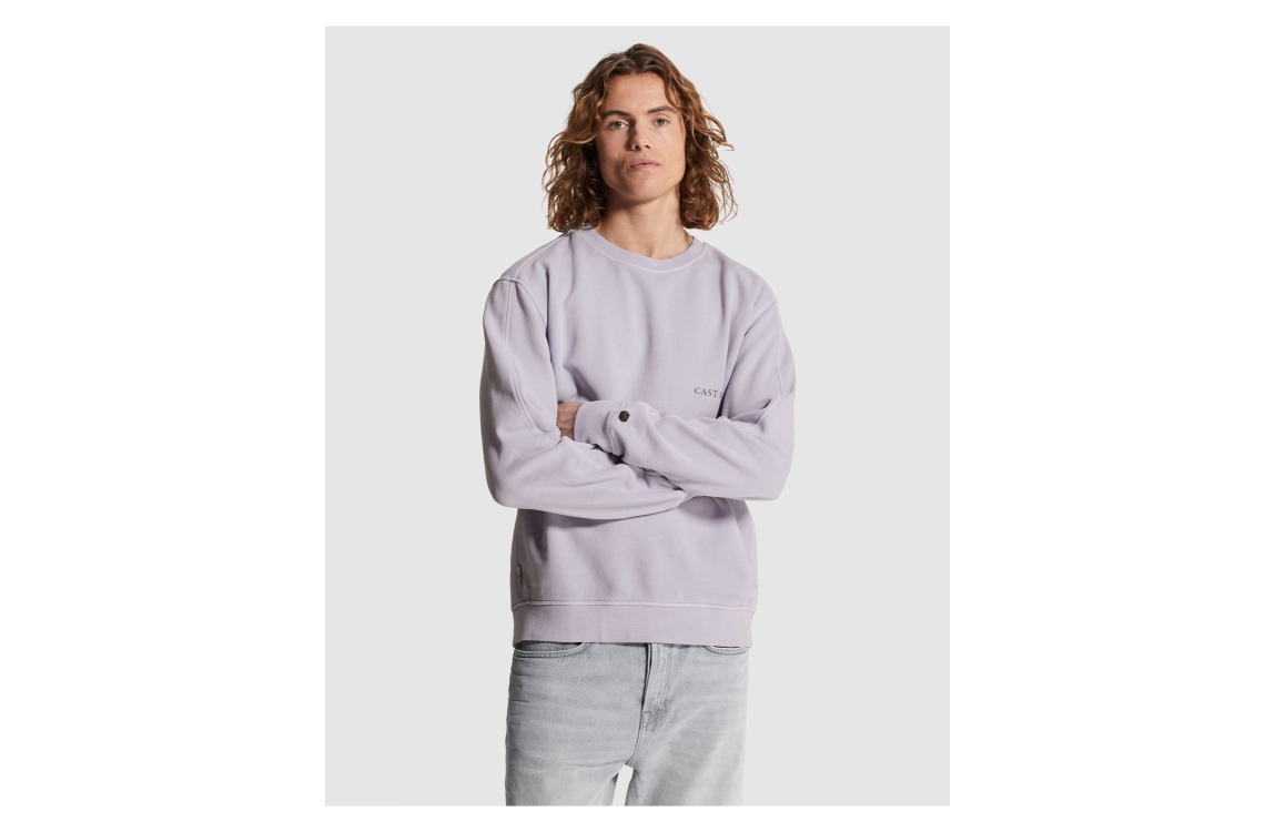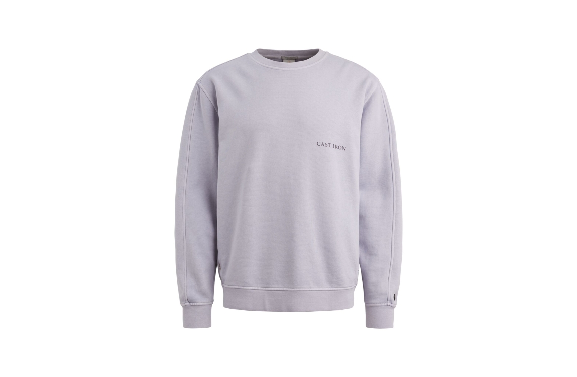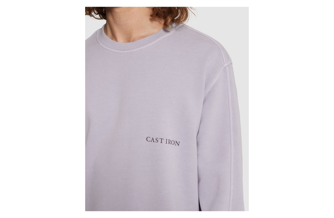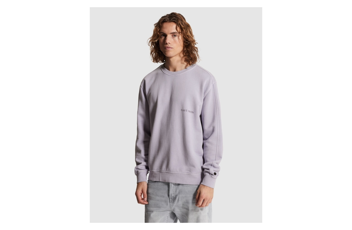 Cast Iron sweater CSW2602401. Dit regular fit model heeft een ronde hals en lange mouwen. Deze paarse sweater van Cast Iron is bewerkt met een logo op het voorpand en afgewerkt met elastische boorden aan de onderzijde.