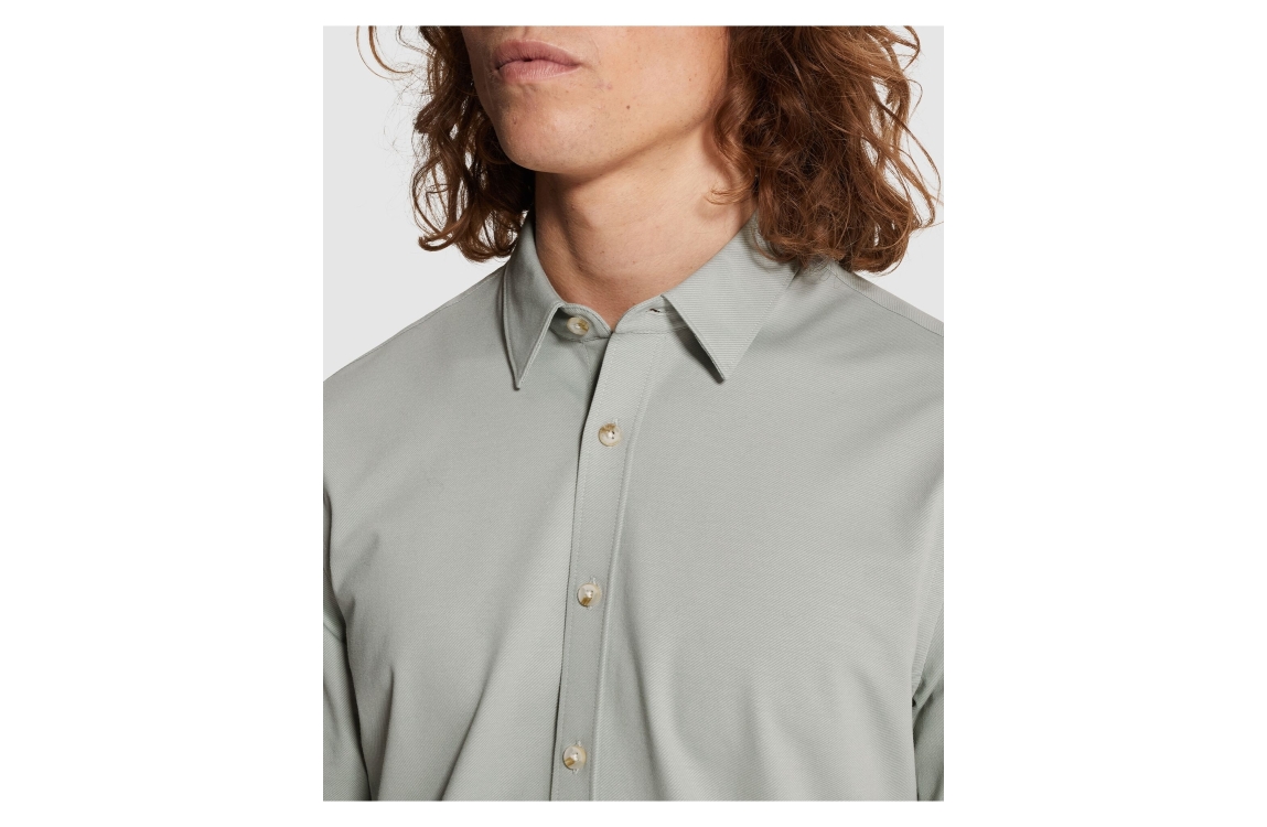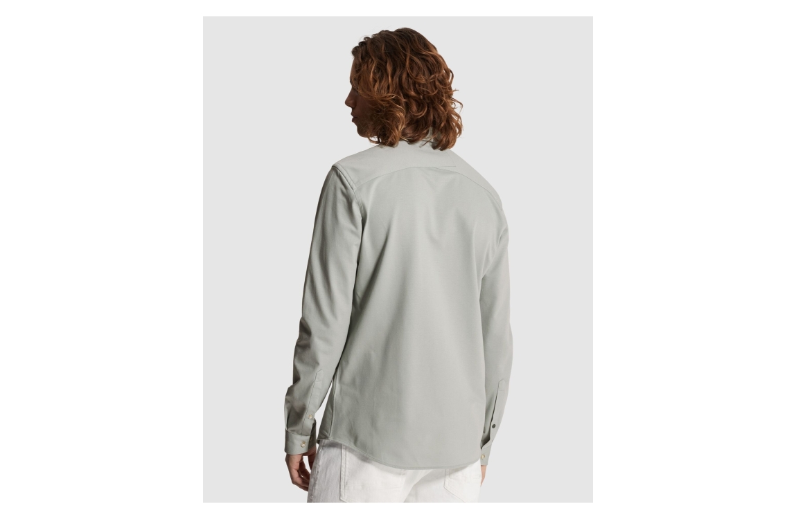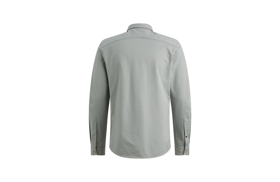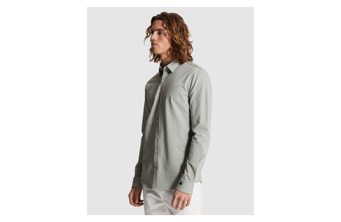 Cast Iron long sleeve shirt twill jersey CSI2603220. Dit slim fit model is voorzien van een kraag en heeft lange mouwen afgewerkt met een split en knoop. Dit groen/grijze shirt van Cast Iron sluit aan de voorzijde door middel van knopen.