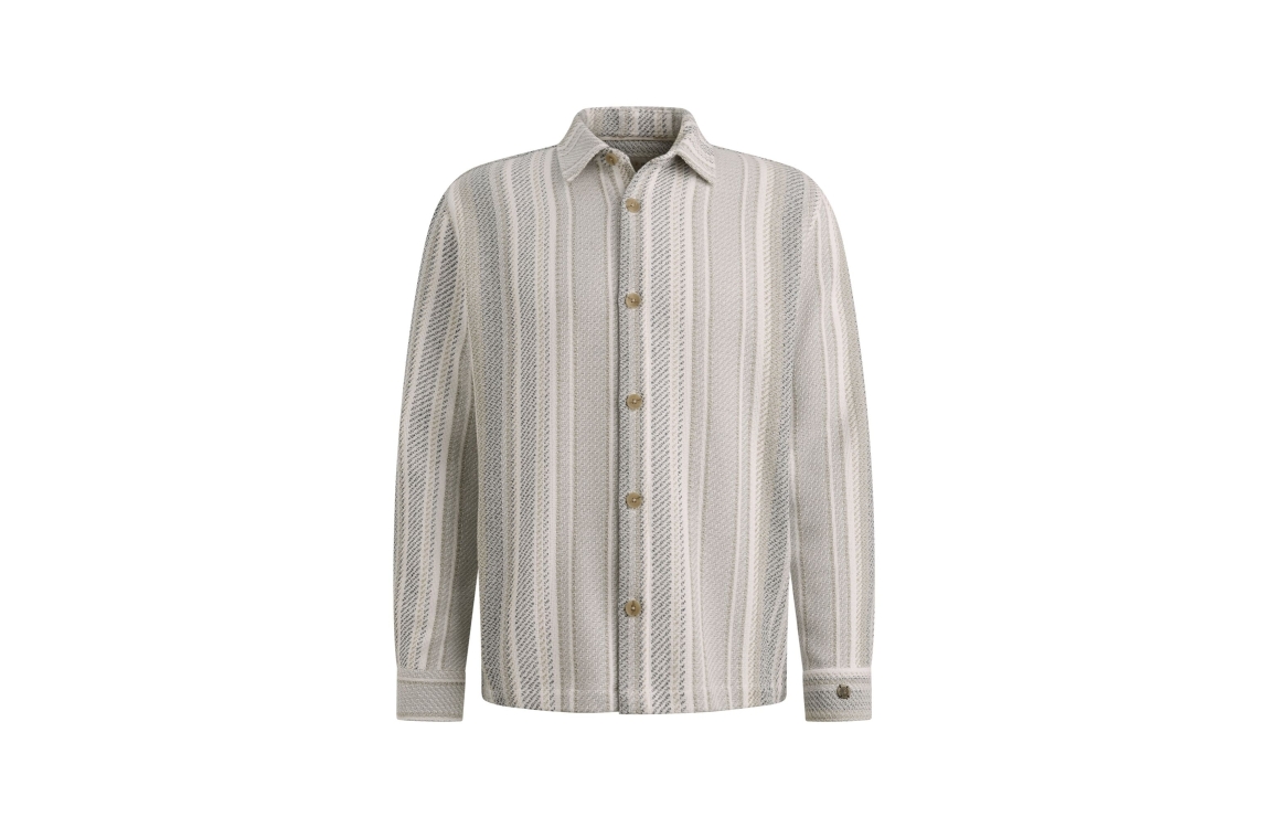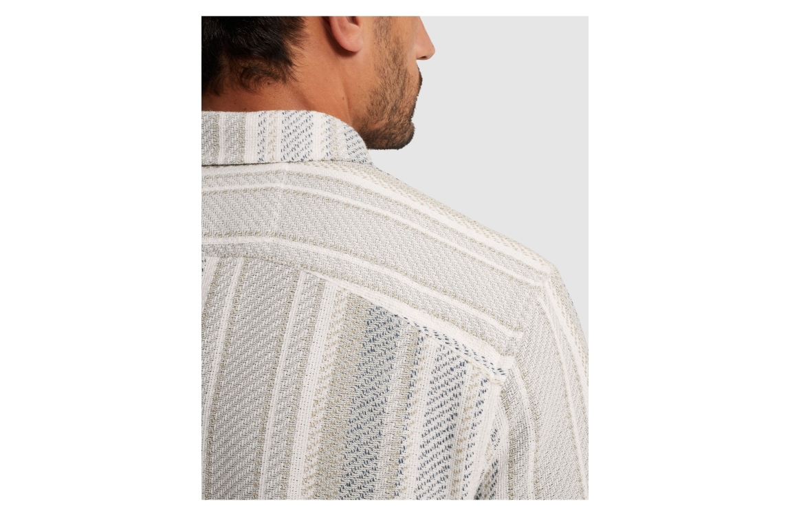 Cast Iron overhemd CSI2603225 7178. Dit rechtvallende model heeft een kraag en lange mouwen. Deze witte overhemd van Cast Iron sluit aan de voorzijde door middel van knopen en is all-over bewerkt met een streepprint in verschillende kleuren.