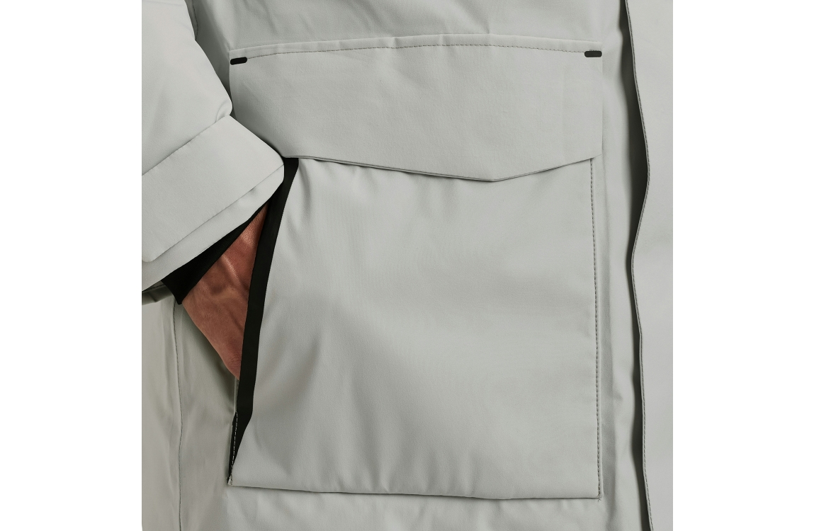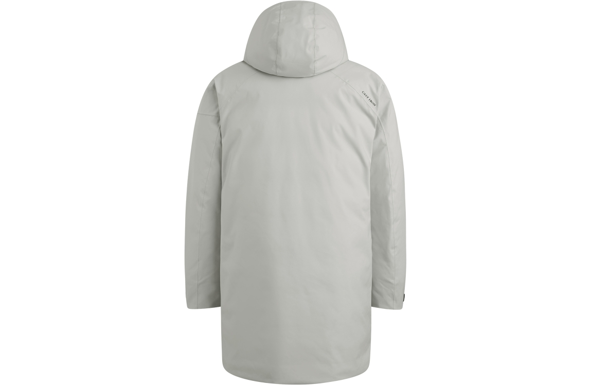 Cast Iron Parka jacket ULTI-MECH/Ramrod. Dit rechtvallende model heeft lange mouwen en een capuchon. Deze high rise melange jas van Cast Iron sluit door rits en knopen en beschikt 2 steekzakken, een borstzak en een binnenzak, verder is deze jas afgewerkt met een merkembleem op de mouw.